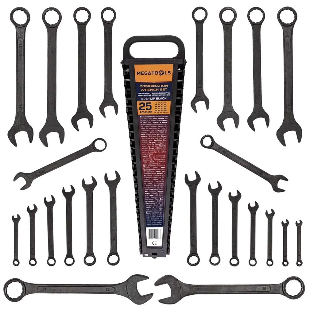 ПроизводителиКлючи комбинированные, 25пр. (6-28, 30, 32мм) (MT-5261MP BLACK) MEGATOOLS