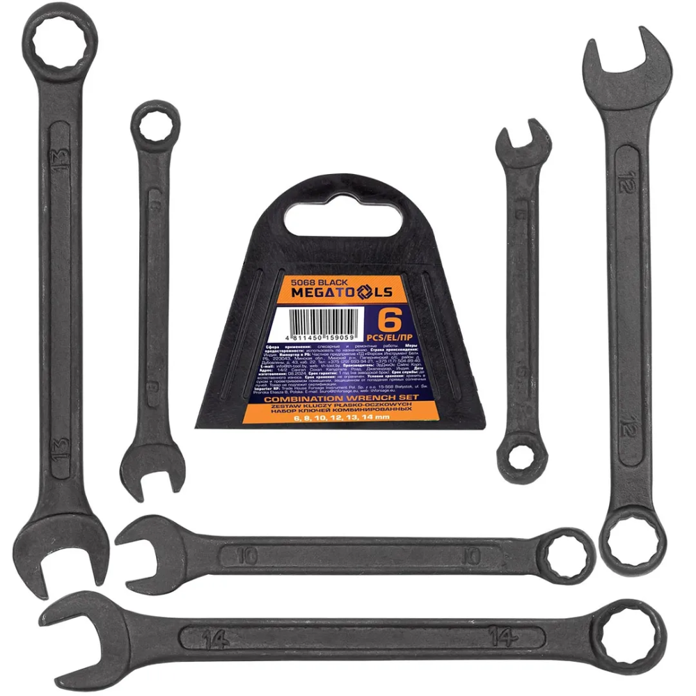 ПроизводителиКлючи комбинированные, 6пр. (6, 8, 10, 12-14мм) (MT-5068 BLACK) MEGATOOLS