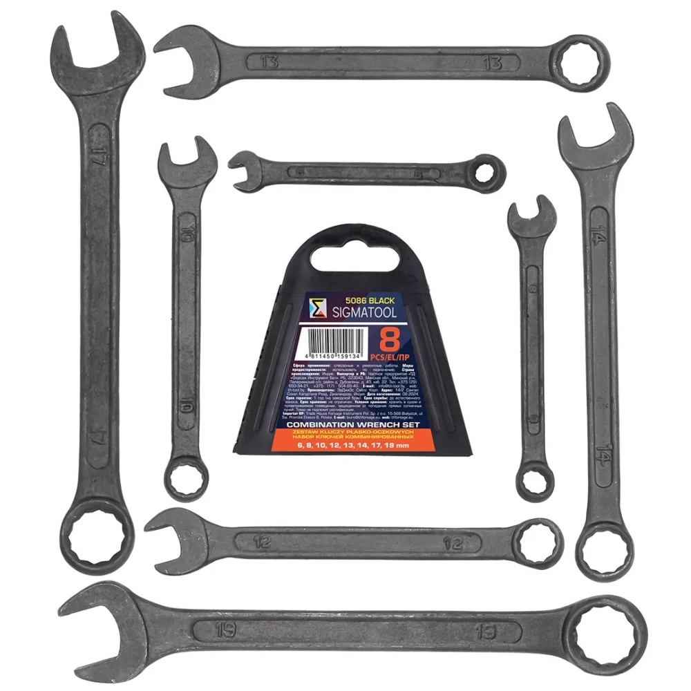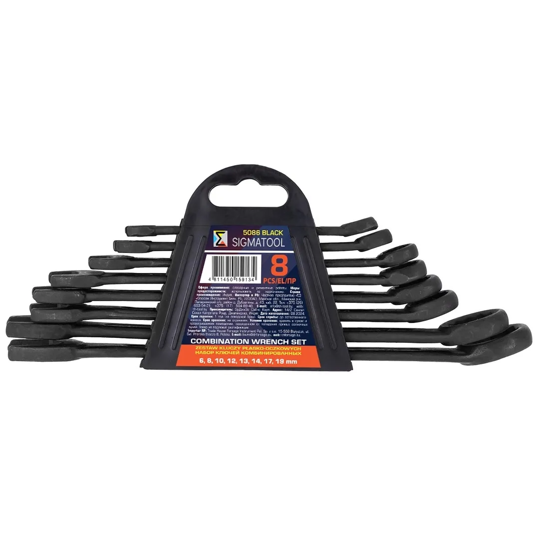 ПроизводителиКлючи комбинированные, 8пр. (6, 8, 10, 12-14, 17, 19мм) (Sigmatool-5086 BLACK) SIGMATOOL
