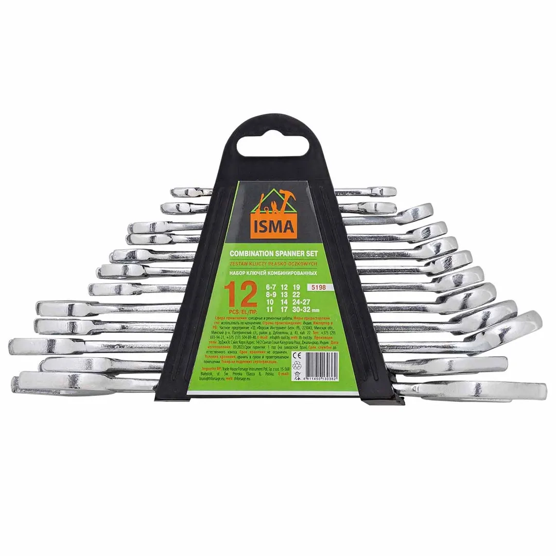 ПроизводителиКлючи комбинированные и рожковые, 12пр. 6-32 мм (Isma-5198) ISMA