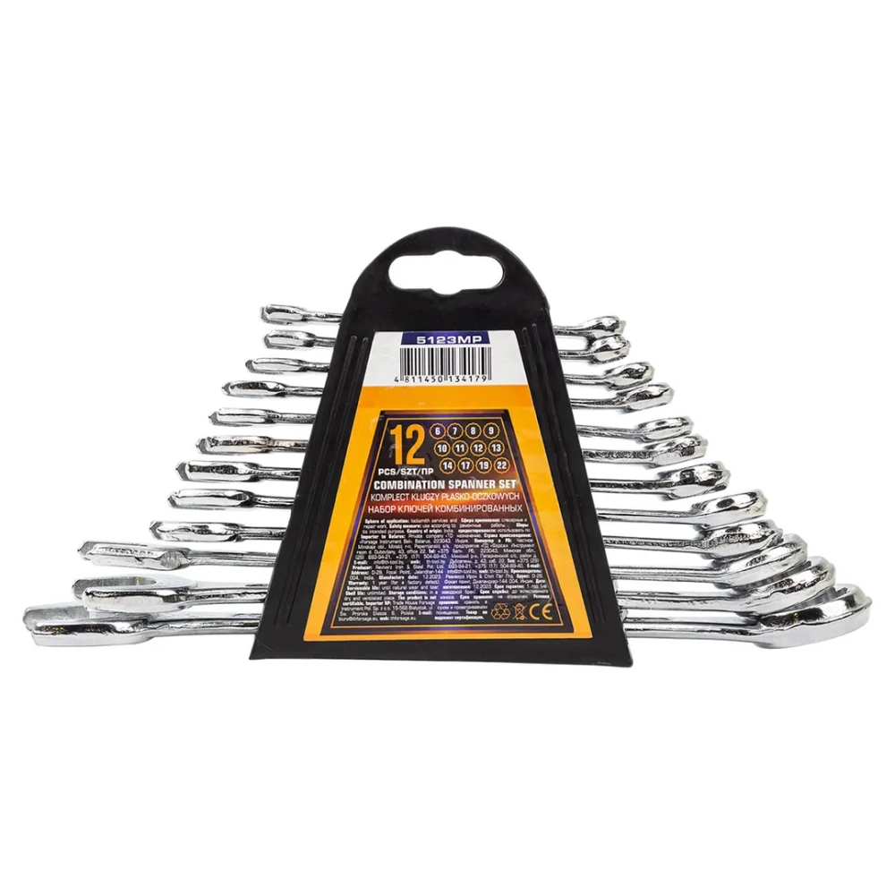 ПроизводителиКлючи комбинированные. набор 12пр (6-14, 17, 19, 22мм) в пласт. держателе (MT-5123MP) MEGATOOLS