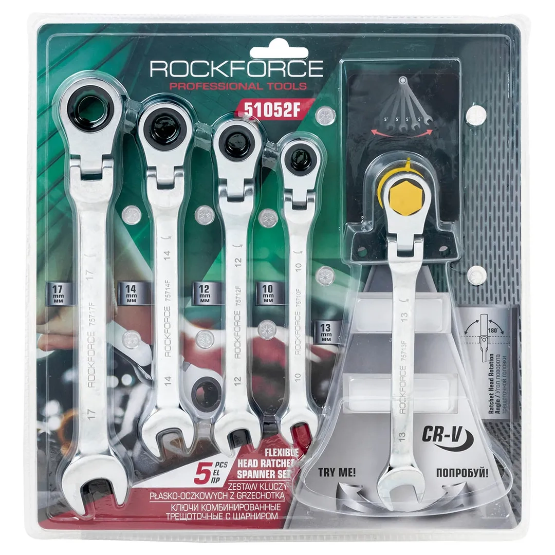 ПроизводителиКлючи комбинированные трещоточные с шарниром, 5пр. (10, 12-14, 17мм) (RF-51052F) RockFORCE