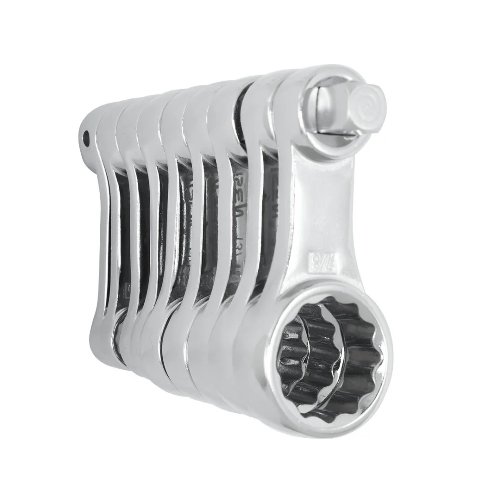 Ключи накидные односторонние, набор 9 предметов предназначен для работы с резьбовыми соединениями дюймовых размеров. Он имеет только один рабочий конец для работы с гайками, болтами, и другими элементами крепления. На другом конце - отверстие под посадочный квадрат 3/8", что позволяет использовать ключи с большим количеством ручного инструмента. Изготовлен из высококачественной стали. Рукоятка удобная, не скользит и обеспечивает надёжный захват. Может использоваться в быту и в промышленности.