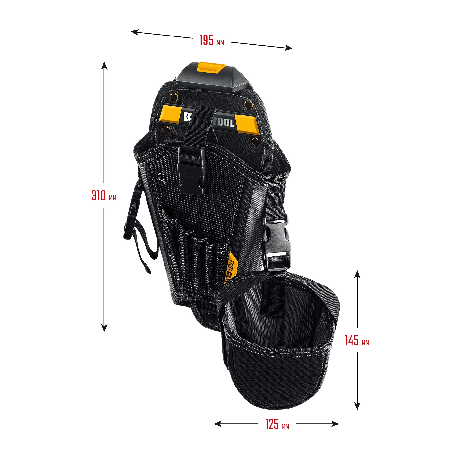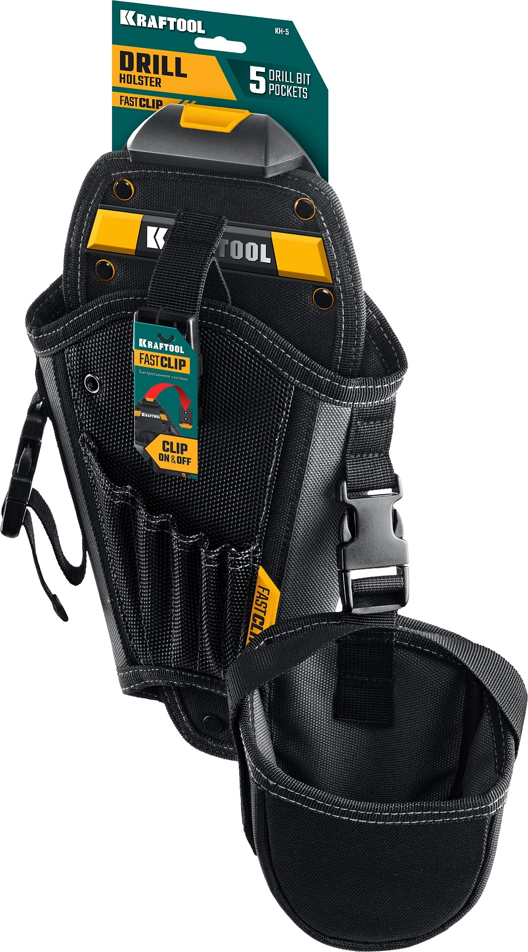 ПроизводителиКобура для шуруповерта, с быстросъём. крепл., 5 отделений для свёрл и бит (38769) KRAFTOOL
