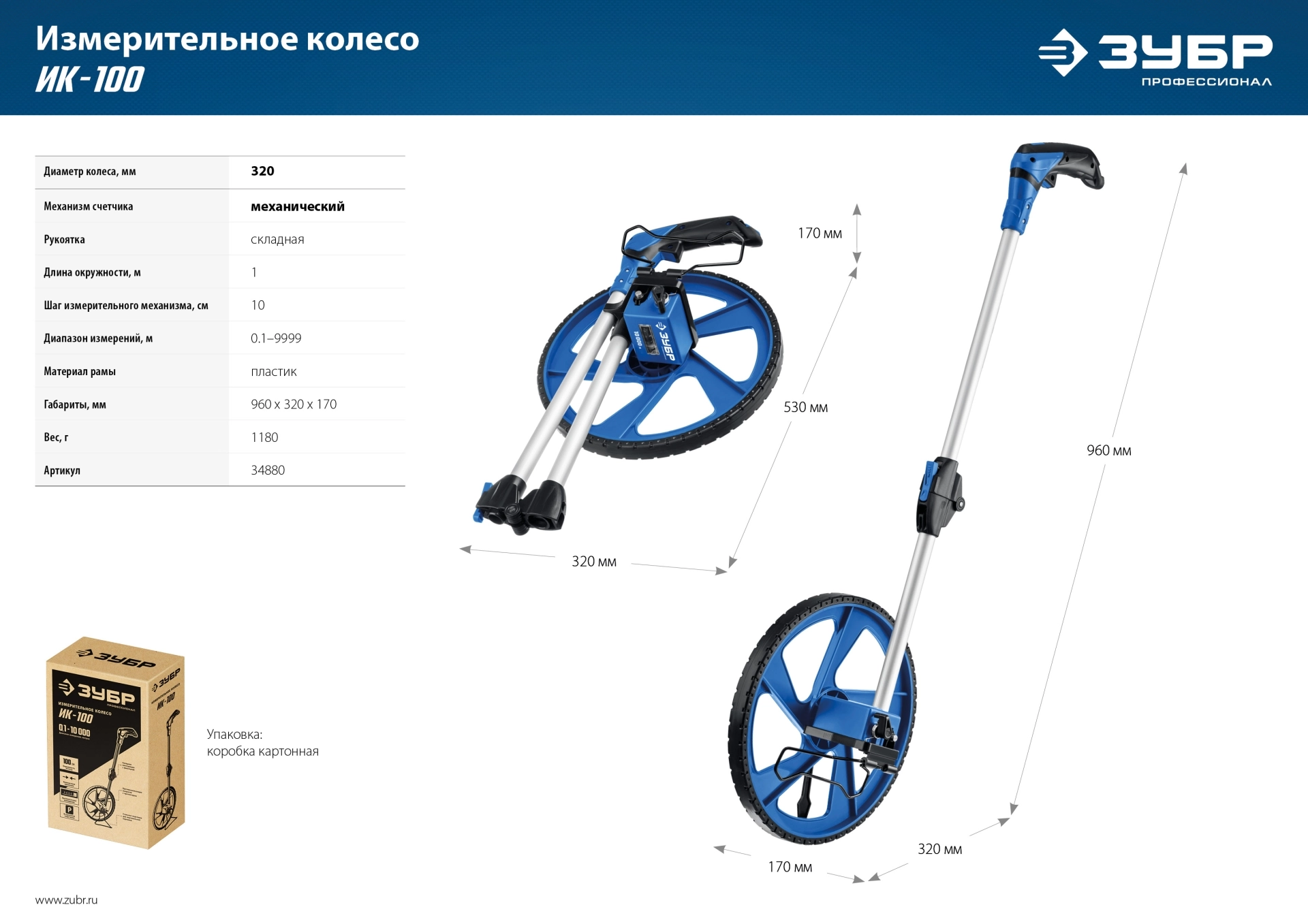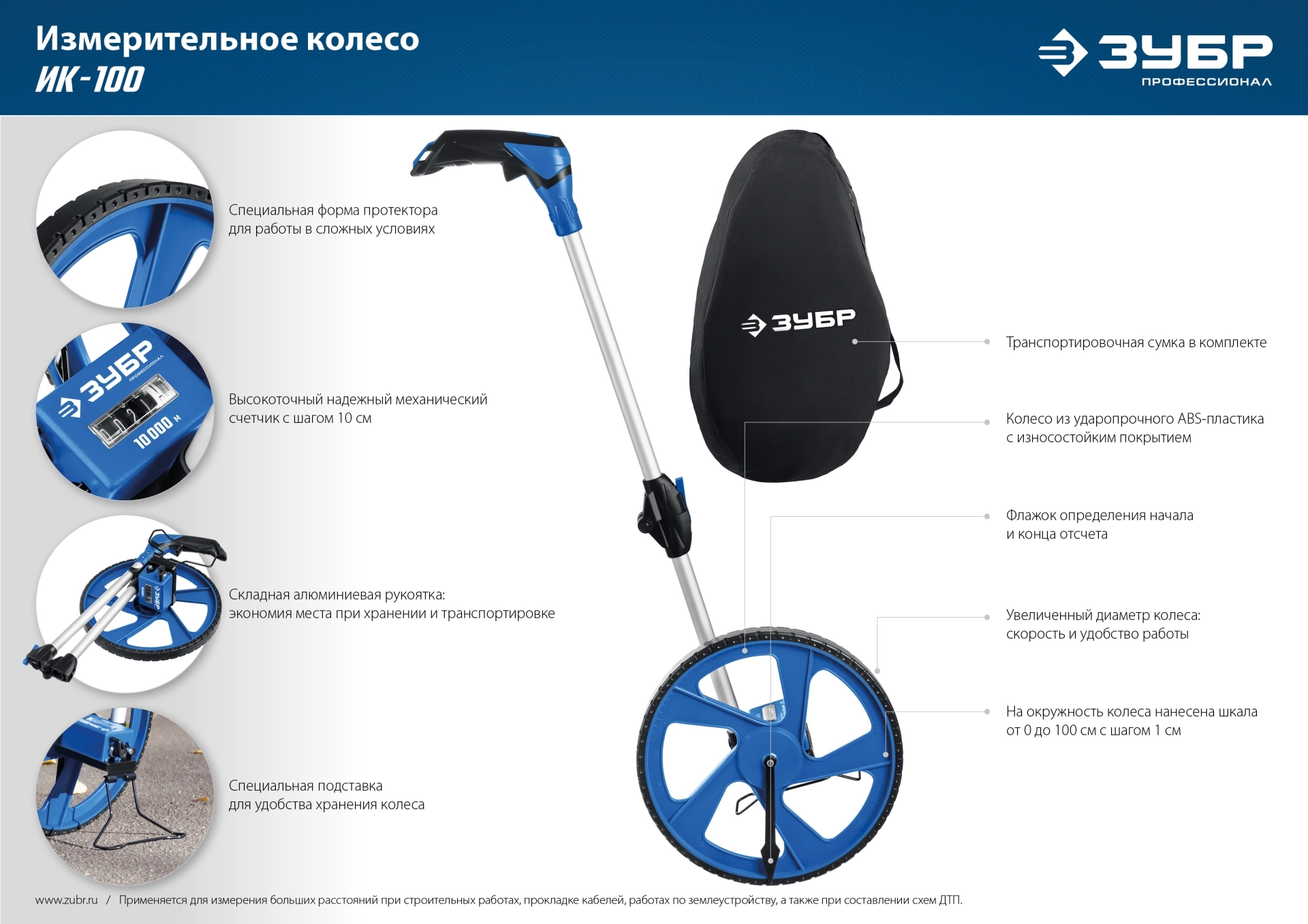 ПроизводителиКолесо измерительное (курвиметр) 9999м, диаметр 320мм "ИК-100" (34880) ЗУБР