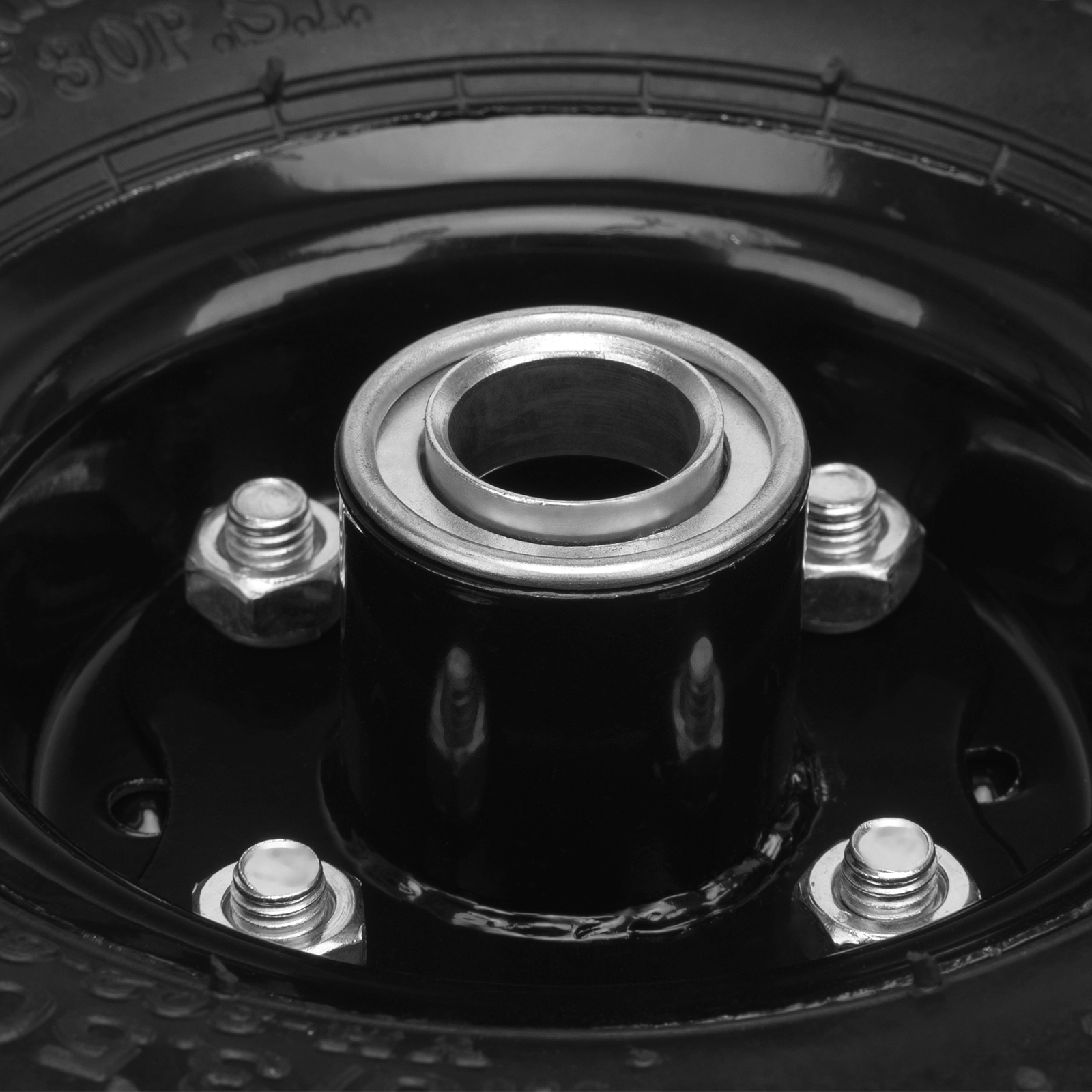 Резиновое колесо не повреждает напольное покрытие при перемещении тележки по помещению.