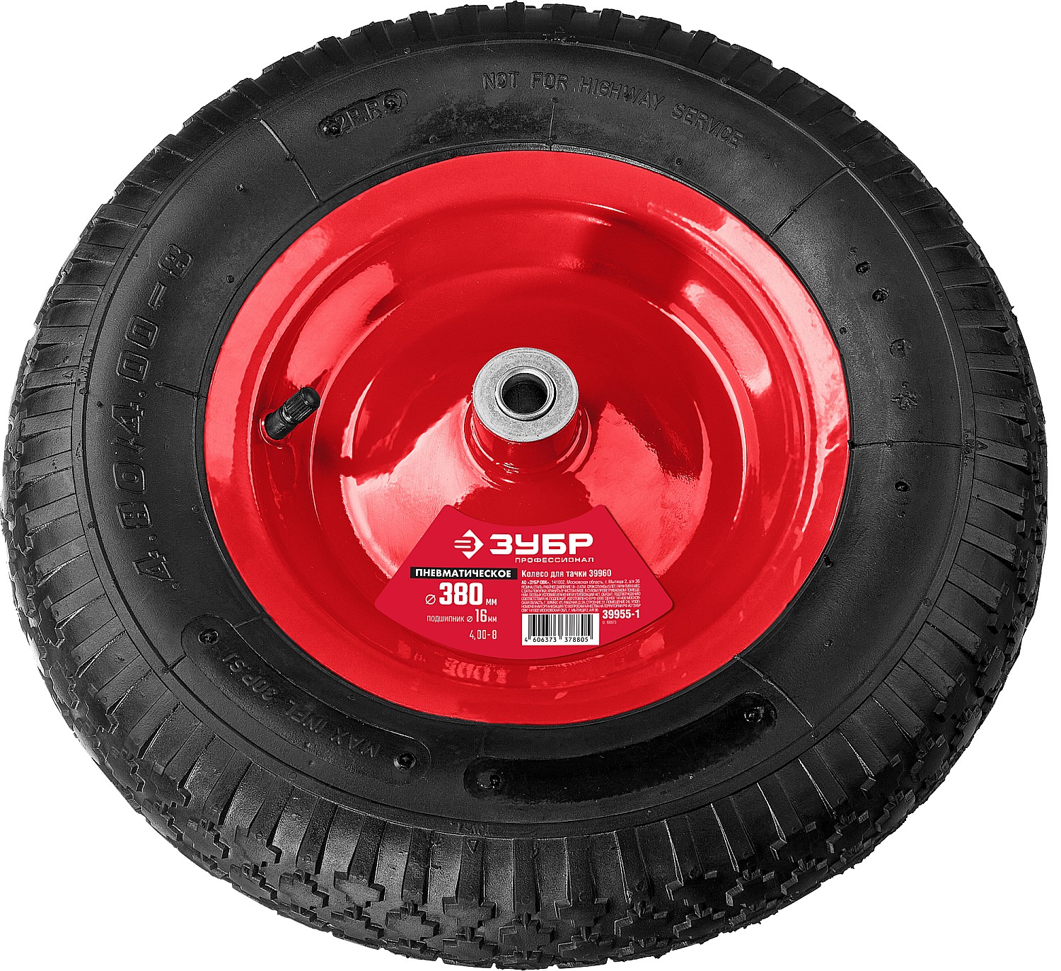 ПроизводителиКолесо пневматич,для тачки арт. 39960, стальной диск, подшипник - 16мм,4х380мм,КП-1 (39955-1) ЗУБР
