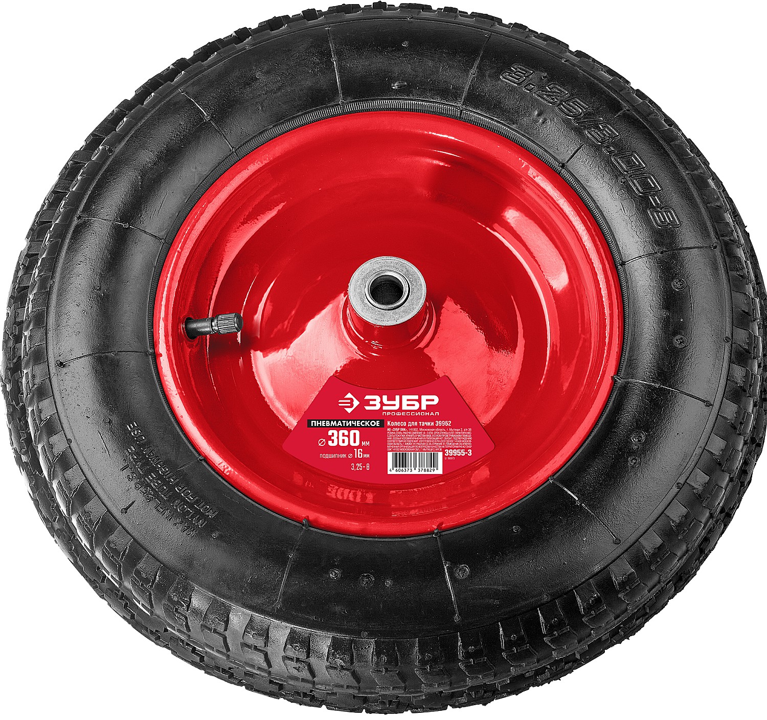ПроизводителиКолесо пневматич,для тачки арт.39962, сталь диск, подш -16 мм,3.25х360мм,КП-3(39955-3) ЗУБР