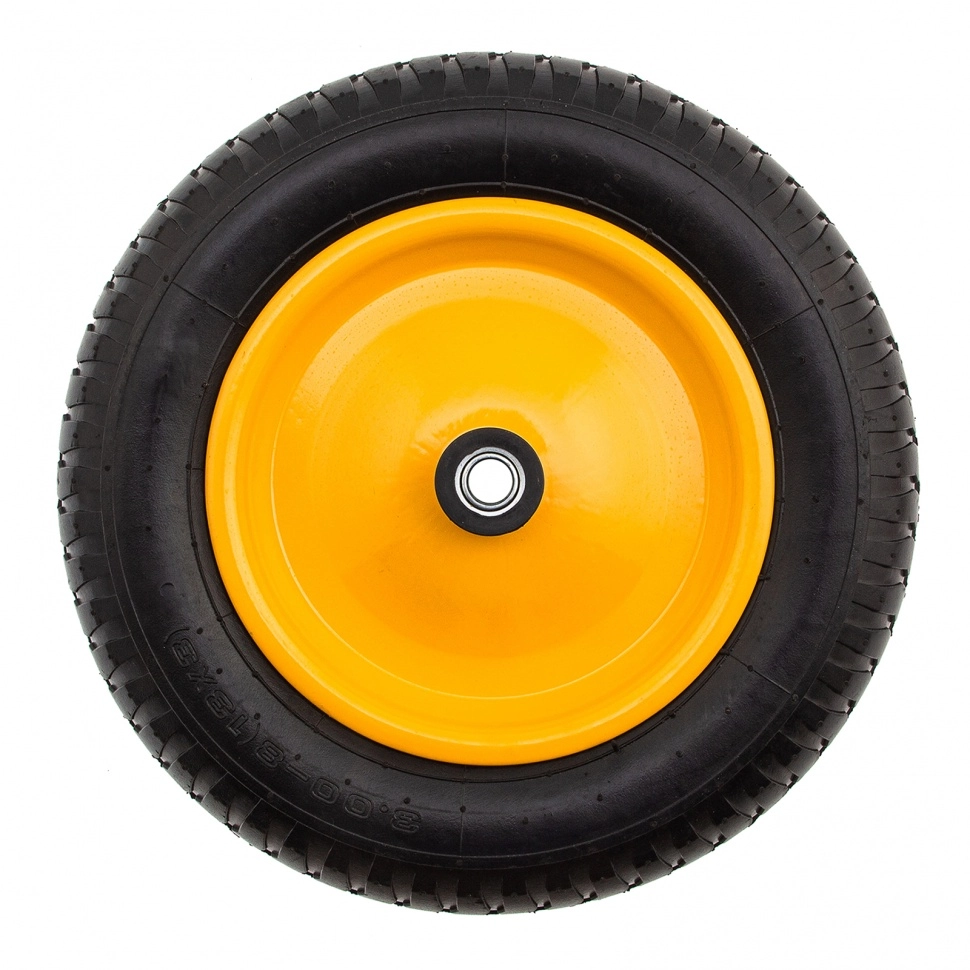 Колесо с шариковыми подшипниками обеспечивает высокую проходимость тачки и рассчитано на ежедневное использование на ровном или рыхлом грунте.