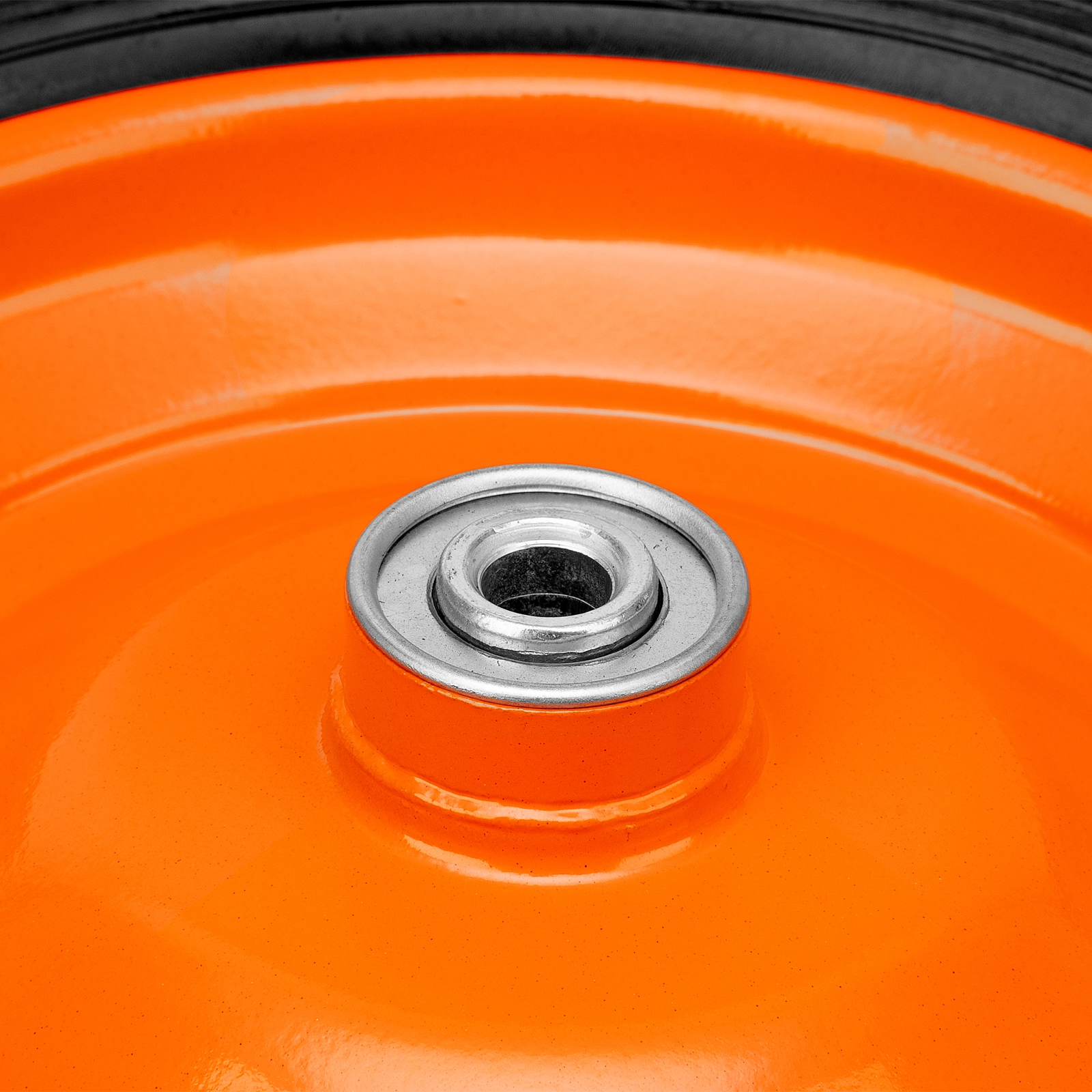 Колесо с шариковыми подшипниками обеспечивает высокую проходимость тачки и рассчитано на ежедневное использование на ровном или рыхлом грунте.