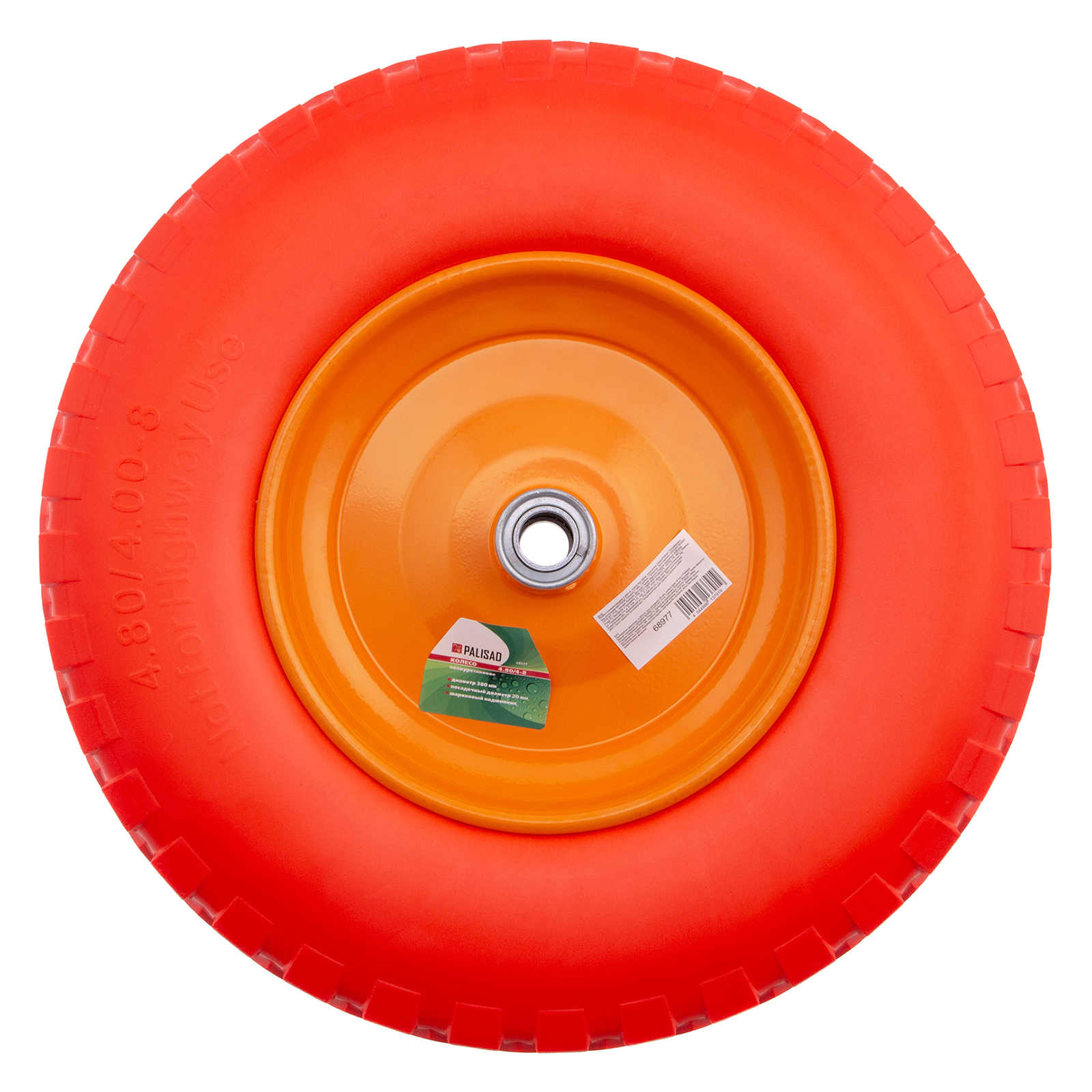 ПроизводителиКолесо полиуретановое 4.80/4.00-8 385мм, подш. внут. 20мм, длина оси 90мм (68977) PALISAD