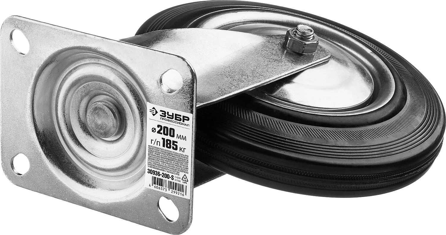ПроизводителиКолесо поворотное d=200 мм, г/п 185 кг, резина/металл, игольчатый подшипник, ЗУБР Профессионал