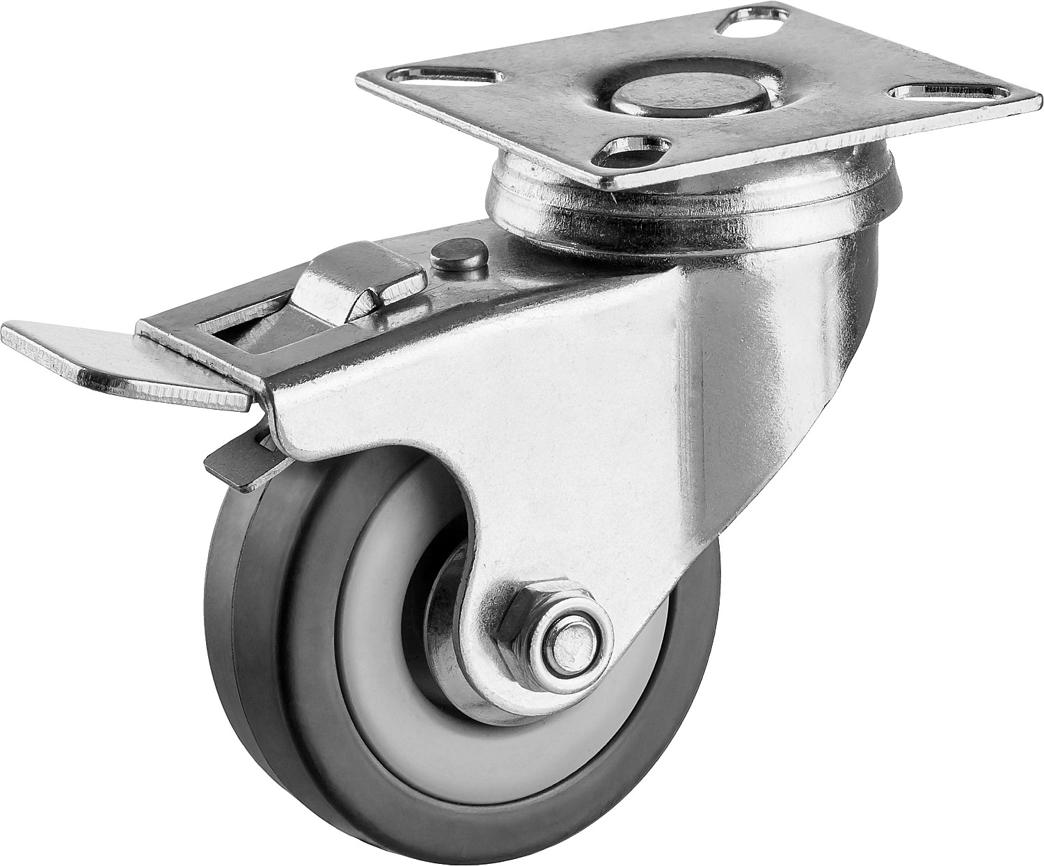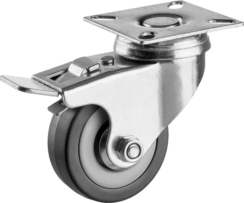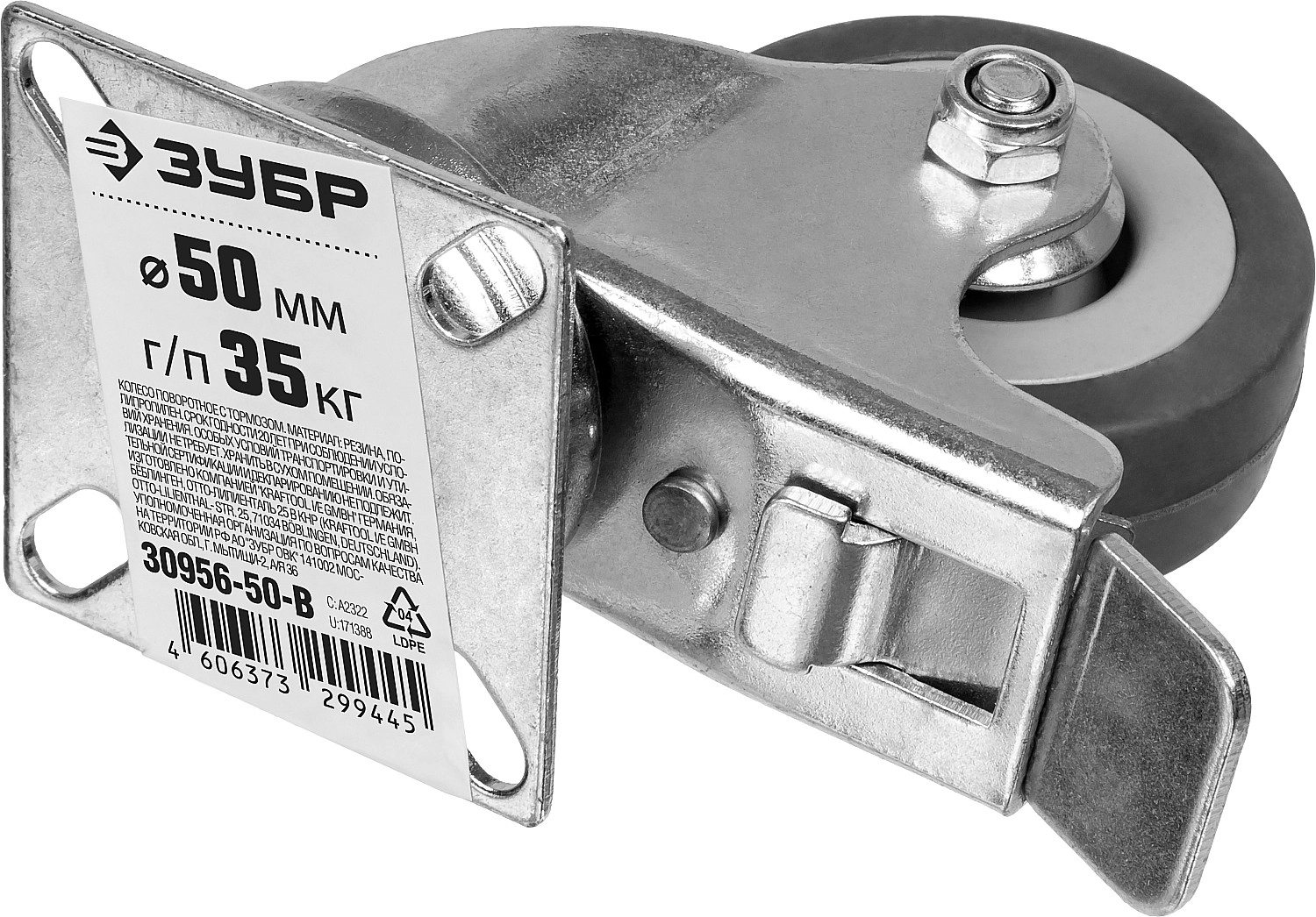 ПроизводителиКолесо поворотное с тормозом d=50 мм, г/п 35 кг, резина/полипропилен, (30956-50-B) ЗУБР