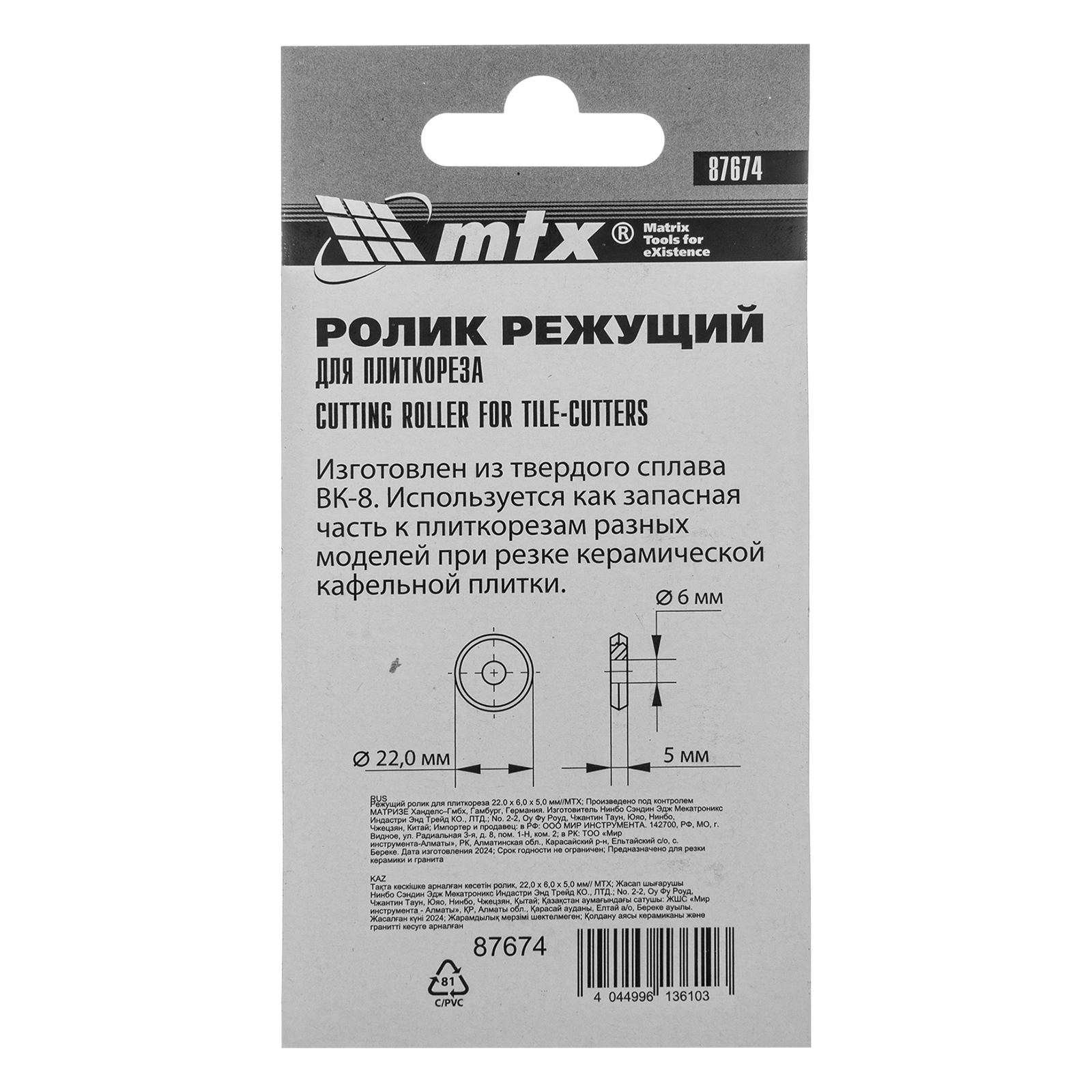 ПроизводителиКолесо режущее для плиткореза, 22х6х5мм (87674) MTX