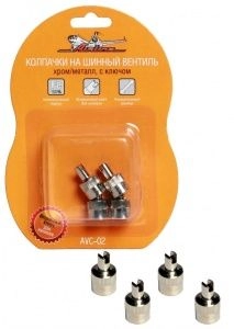 ПроизводителиКолпачки на шинный вентиль с ключом, хром, металл AIRLINE, комплект