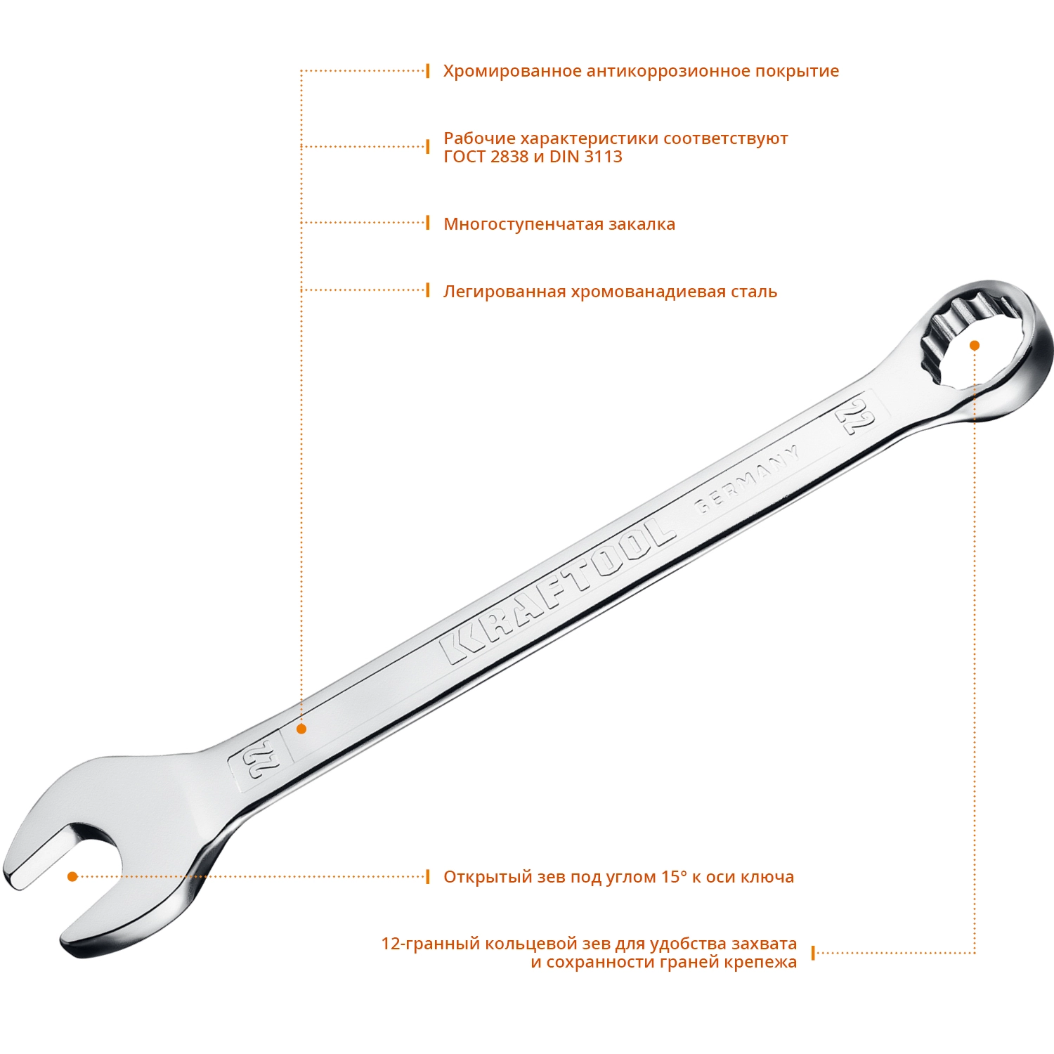 ПроизводителиКлюч комбинированный 22мм (27079-22_z01) KRAFTOOL