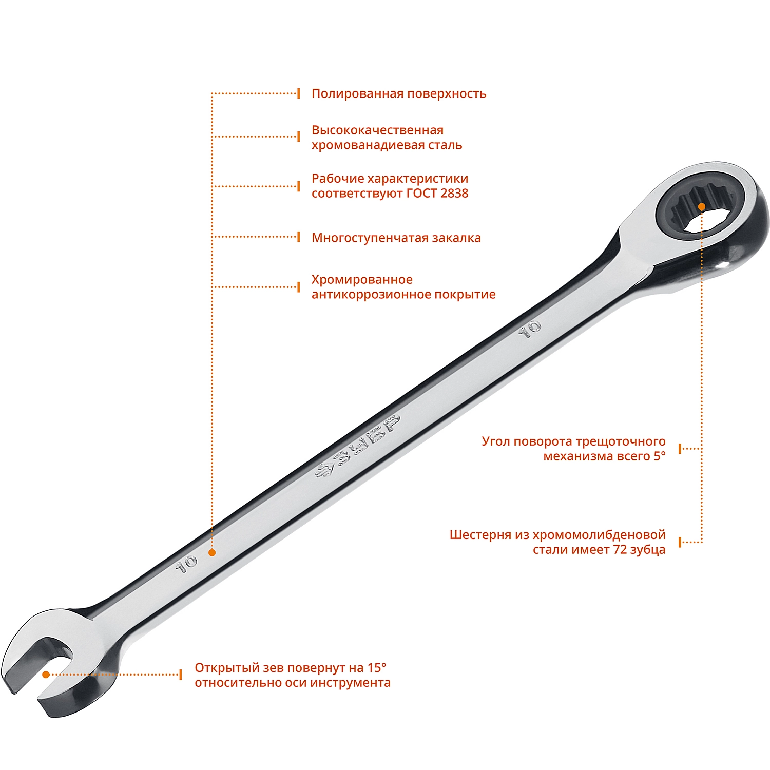 ПроизводителиКлюч комбинированный трещоточный 10мм (27074-10_z01) ЗУБР