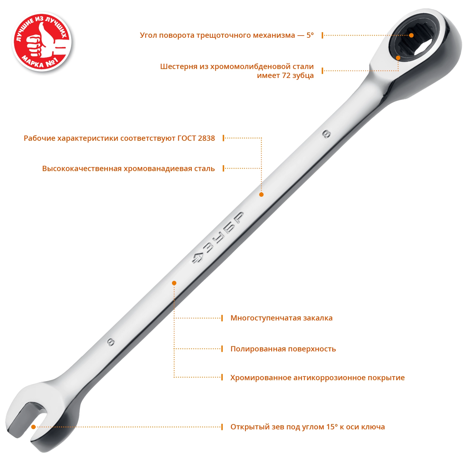 ПроизводителиКлюч комбинированный трещоточный 8мм (27074-08_z01) ЗУБР
