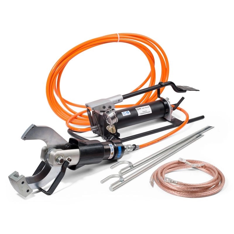 Состав комплекта: ножницы гидравлические НГО-105 помпа гидравлическая ножная ПМН-7012 со встроенным манометром изолированный рукав высокого давления, 10 м комплект заземления для режущей головы: (провод заземления длиной 1 м со штырем) комплект заземления для помпы: (провод заземления длиной 3 м со штырем) прочный стальной кейс