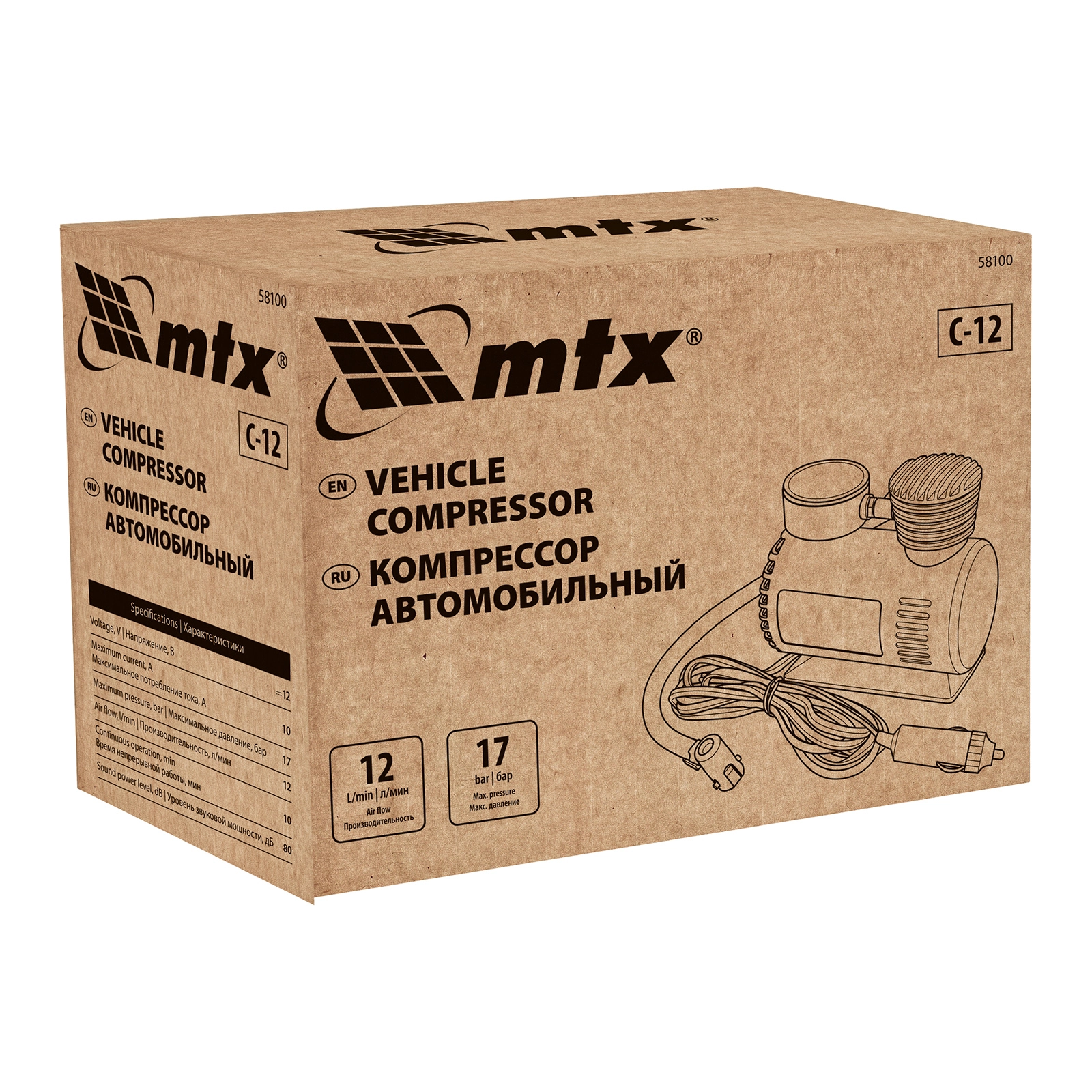 ПроизводителиКомпрессор автомобильный С-12, 12 В, 17 атм., 12 л/мин MTX
