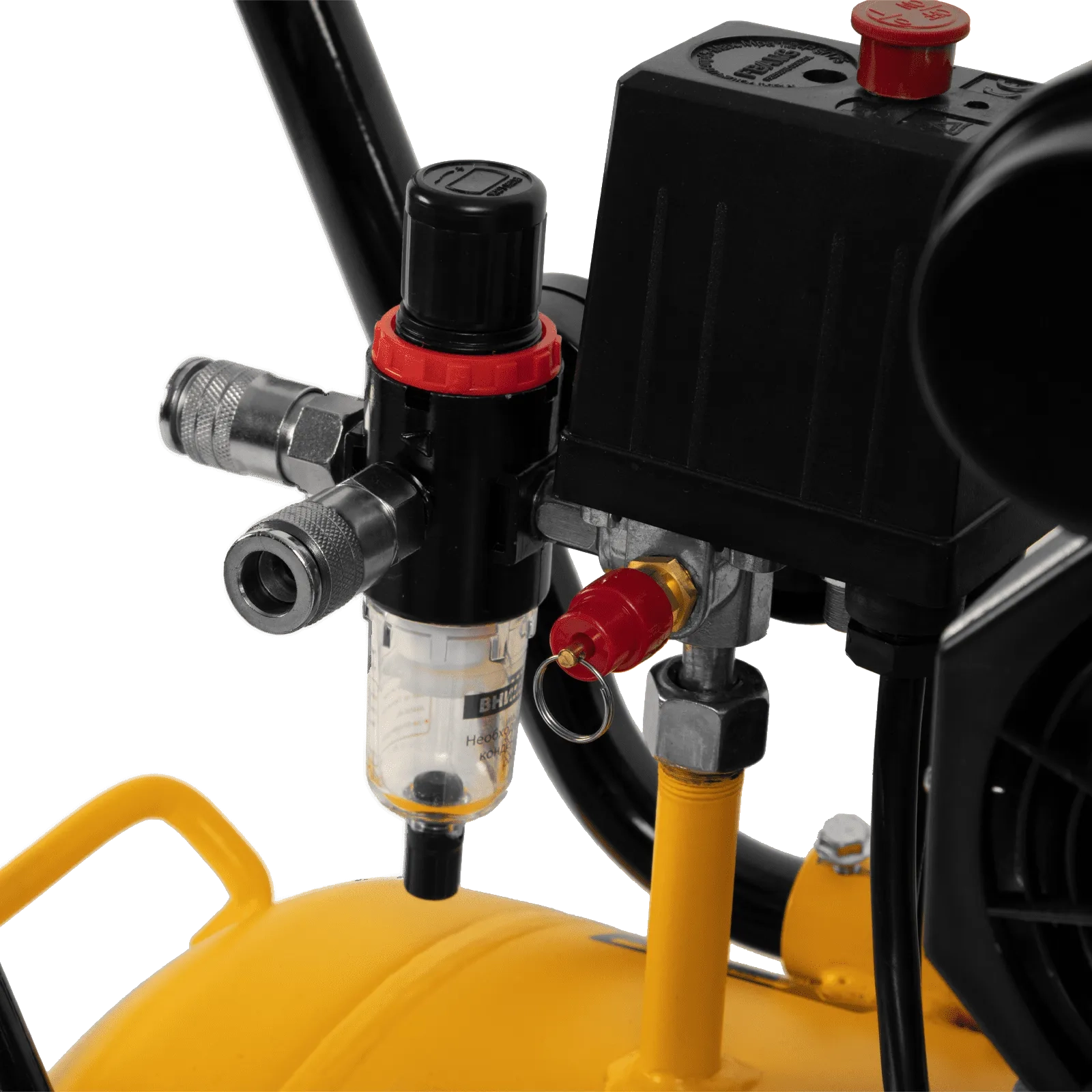 - Мобильность — компрессор оборудован ручкой и 3 колесами (из них 1 поворотное) для удобного разворота и перемещения.