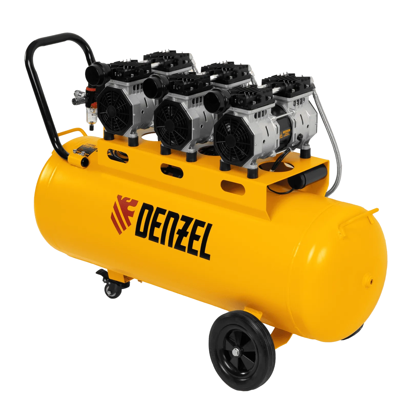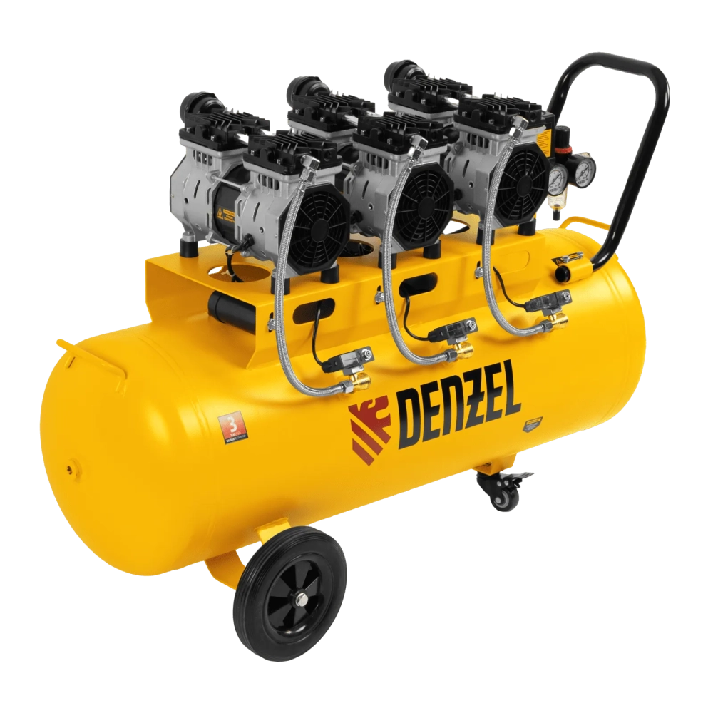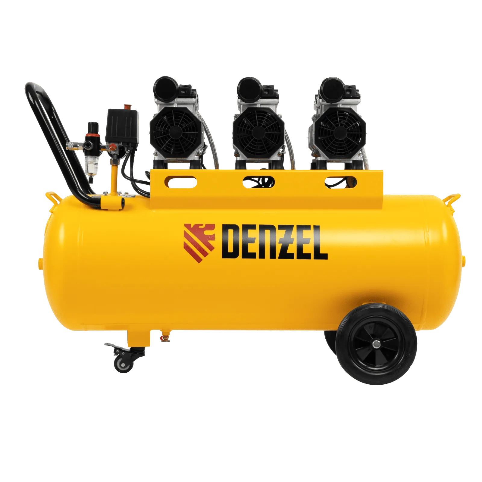 ПроизводителиКомпрессор безмаслянный малошумный DLS 1800/100,1800 Вт, 3х600, 100 л, 345 л/мин Denzel