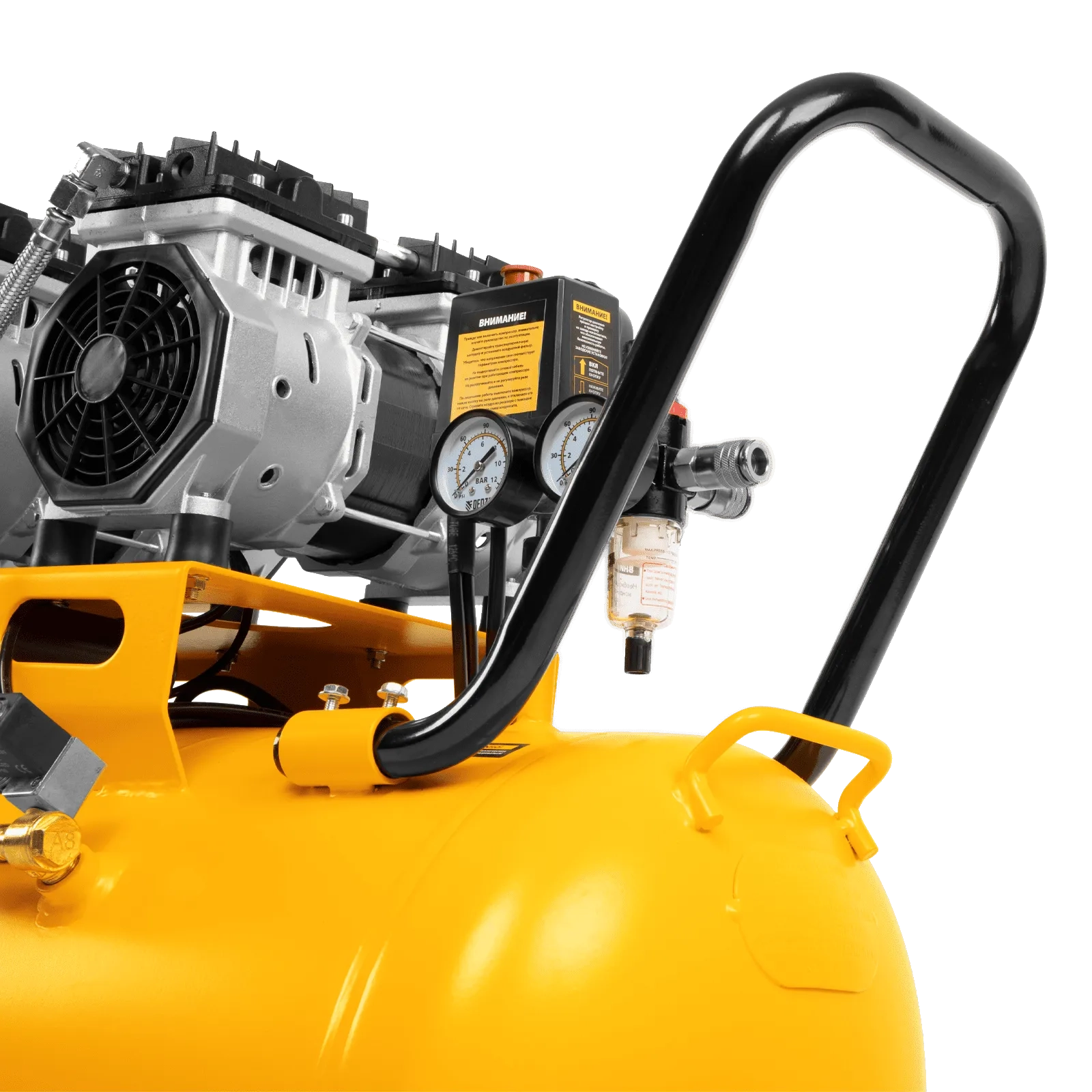 - Низкий уровень шума — работа компрессора не вызывает дискомфорт, его можно использовать в помещении или на дачном участке.