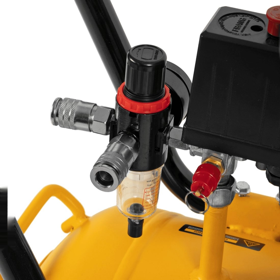- Контроль давления в ресивере и на выходной магистрали — компрессор оборудован двумя манометрами.