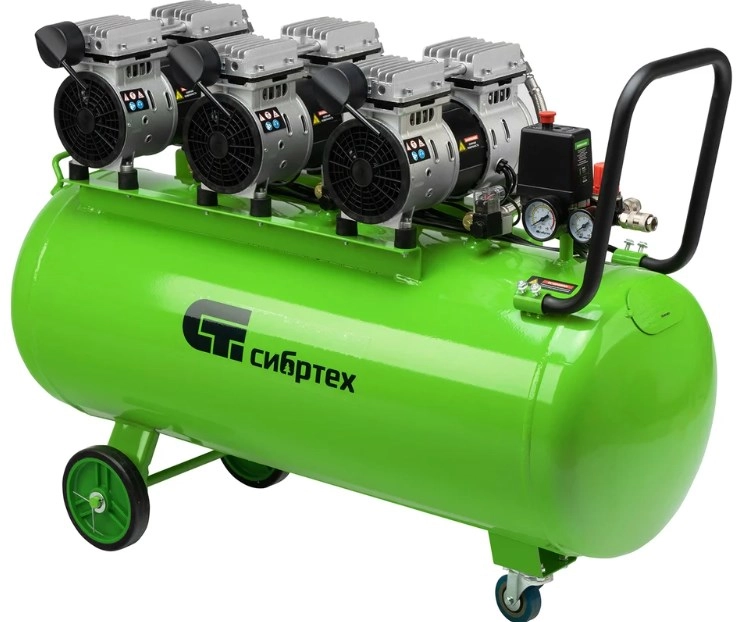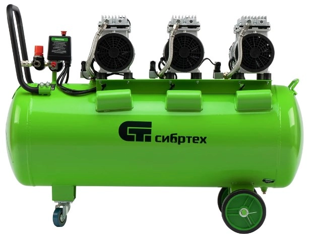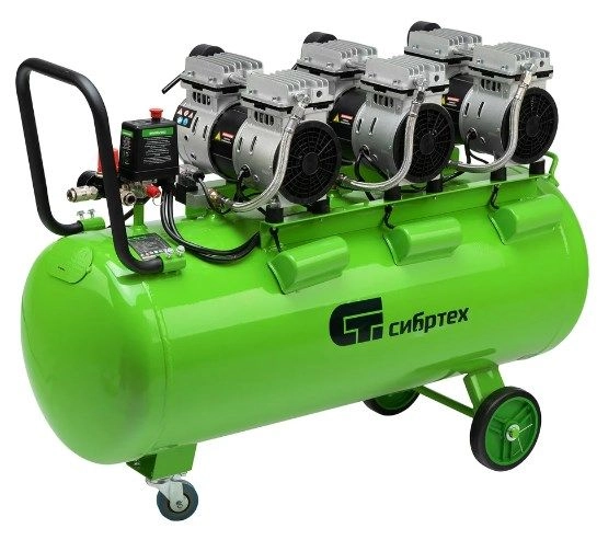 Бренд: СибртехБезмасляный малошумный компрессор Сибртех МБ 2250/100 58008 мощностью 2250 Вт и объемом ресивера 100 л имеет производительность на входе 400 л/мин и сжимает воздух под давлением до 8 бар. Используется для обеспечения функционирования пневмоинструмента, например, краскораспылителя, перфоратора или пневматического шуруповерта. Для работы устройства не требуется масло, поэтому воздух на выходе не содержит его частиц. Компрессор оптимален для проведения покрасочных работ и продувки электронных компонентов.;Одна из ключевых особенностей компрессора — низкий уровень шума (не превышает 70 дБ), позволяющий использовать устройство в жилом помещении без дискомфорта для людей.