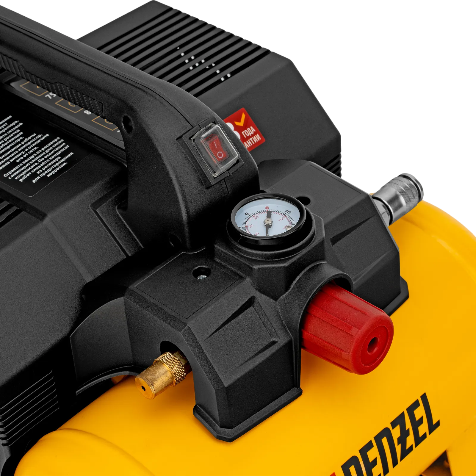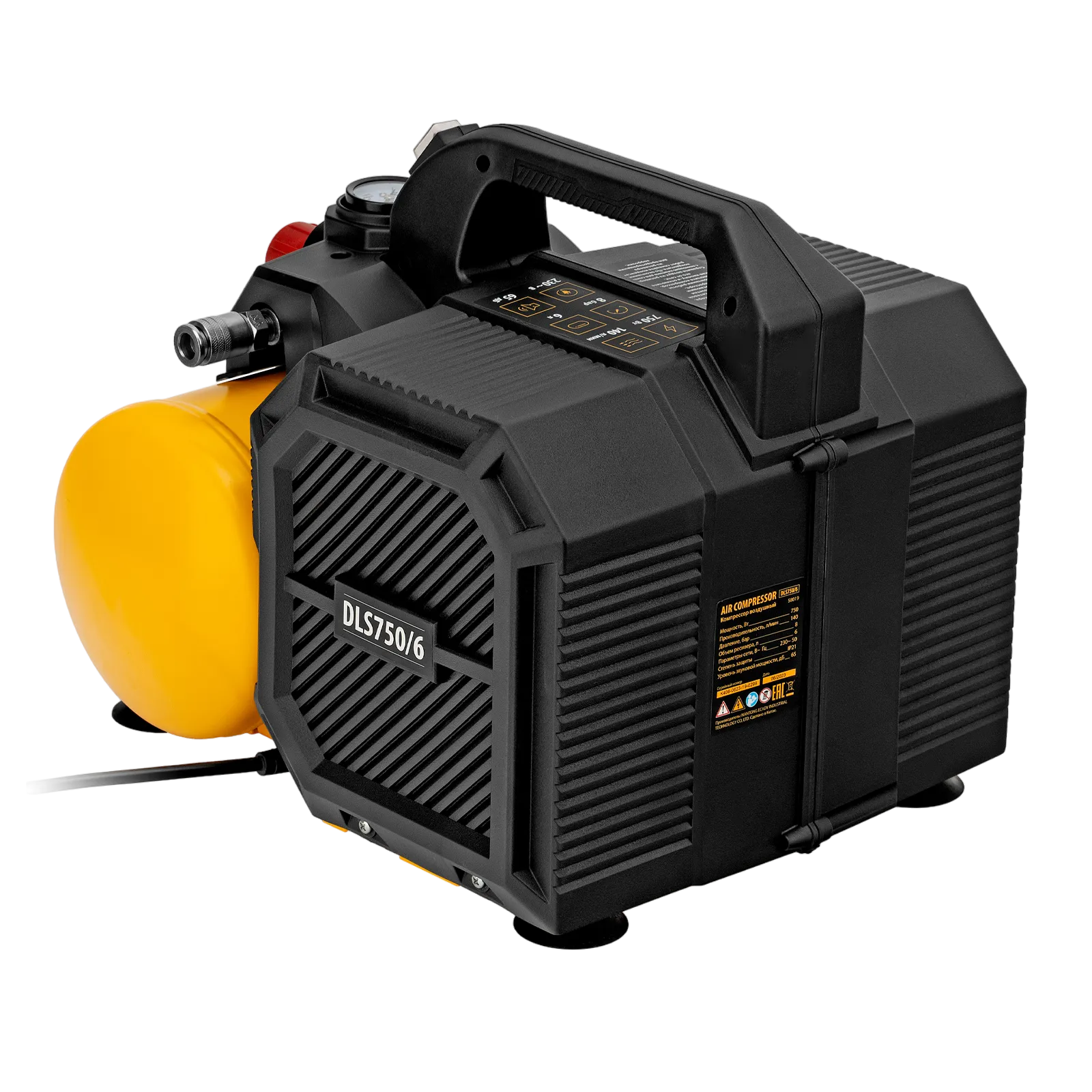 ПроизводителиКомпрессор DLS750/6 безмасляный малошумный 750 Вт, 140 л/мин,ресивер 6 л Denzel