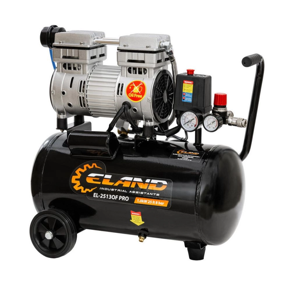 ПроизводителиКомпрессор воздушный безмасл. EL2513OFPROE (1.0 кВт, 140 л/мин, 220В, 8 Атм, 2 цилинд., 25 л) ELAND