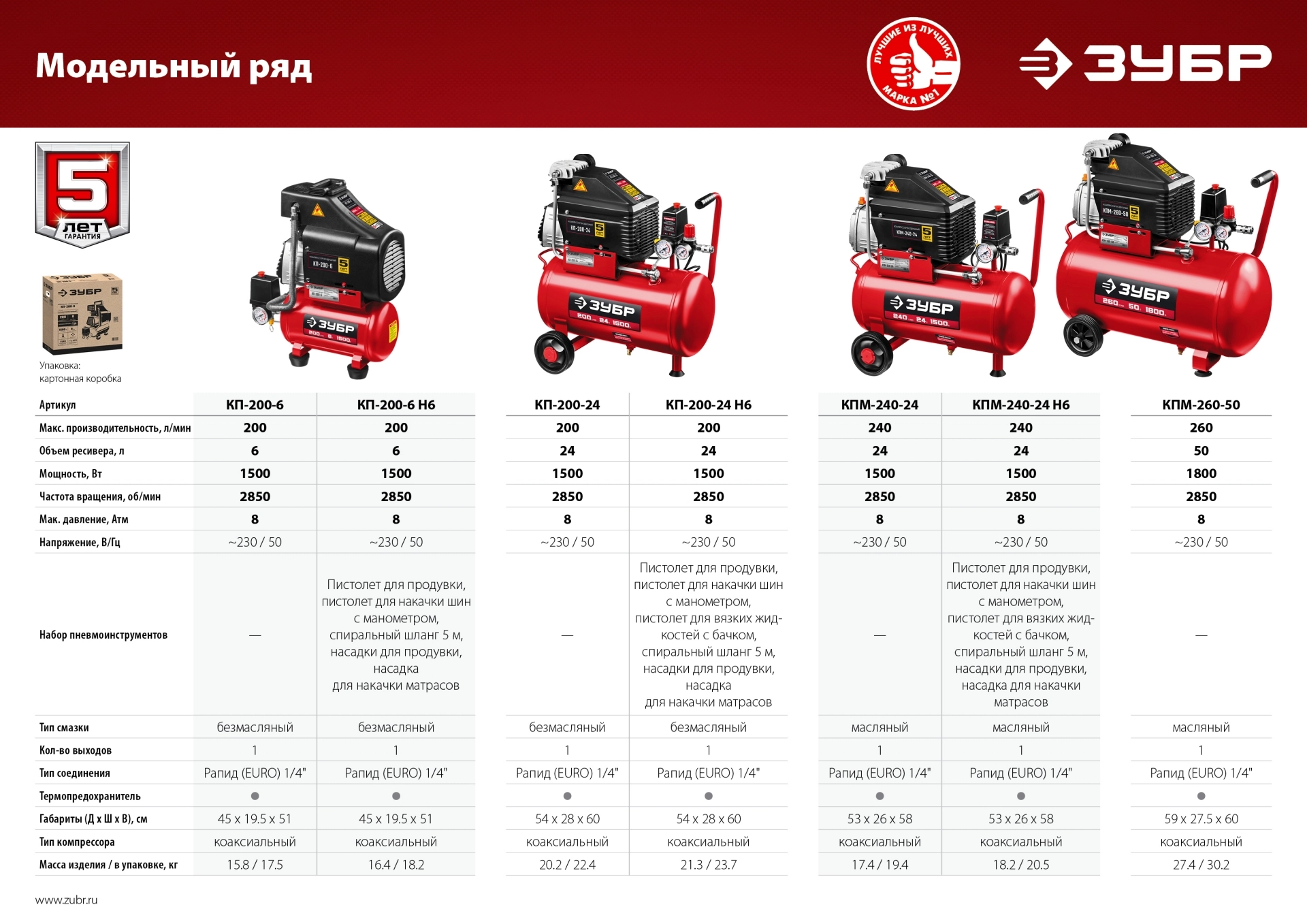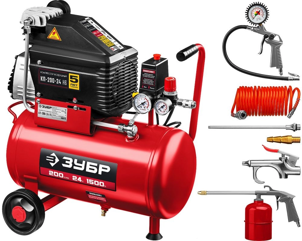 ПроизводителиКомпрессор воздушный безмасляный КП-200-24 Н6 (1500 Вт, 200 л/мин, 24 л, кор.) ЗУБР
