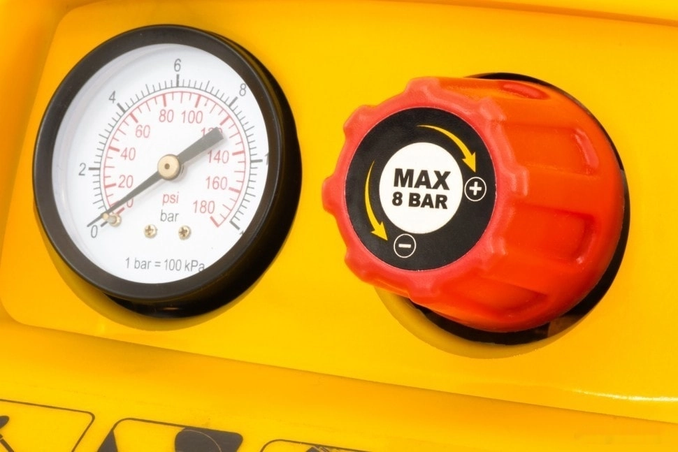 Наличие манометра — пользователь может легко контролировать давление сжатого воздуха в ресивере.