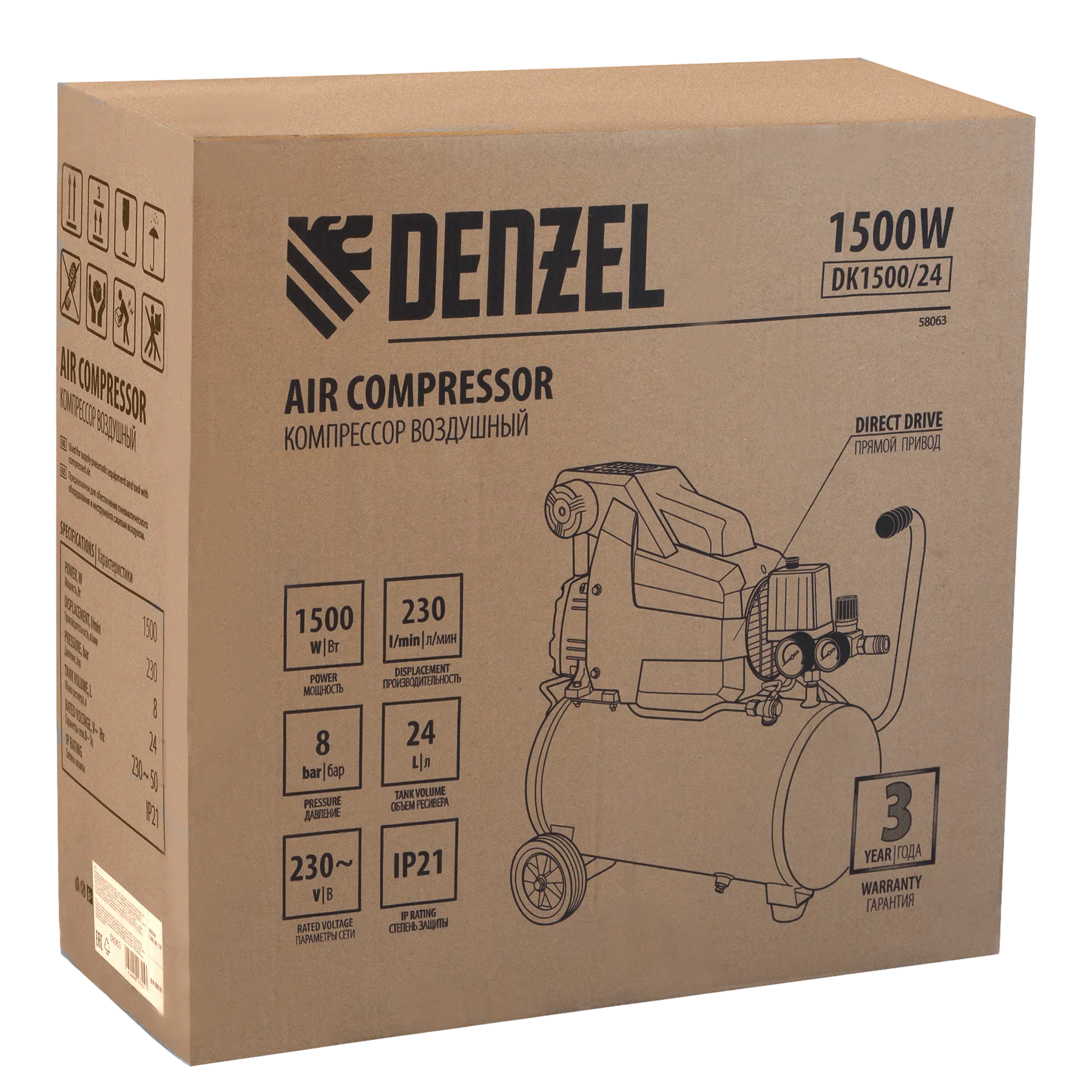 ПроизводителиКомпрессор воздушный DK1500/24,Х-PRO 1,5 кВт, 230 л/мин, 24 л Denzel