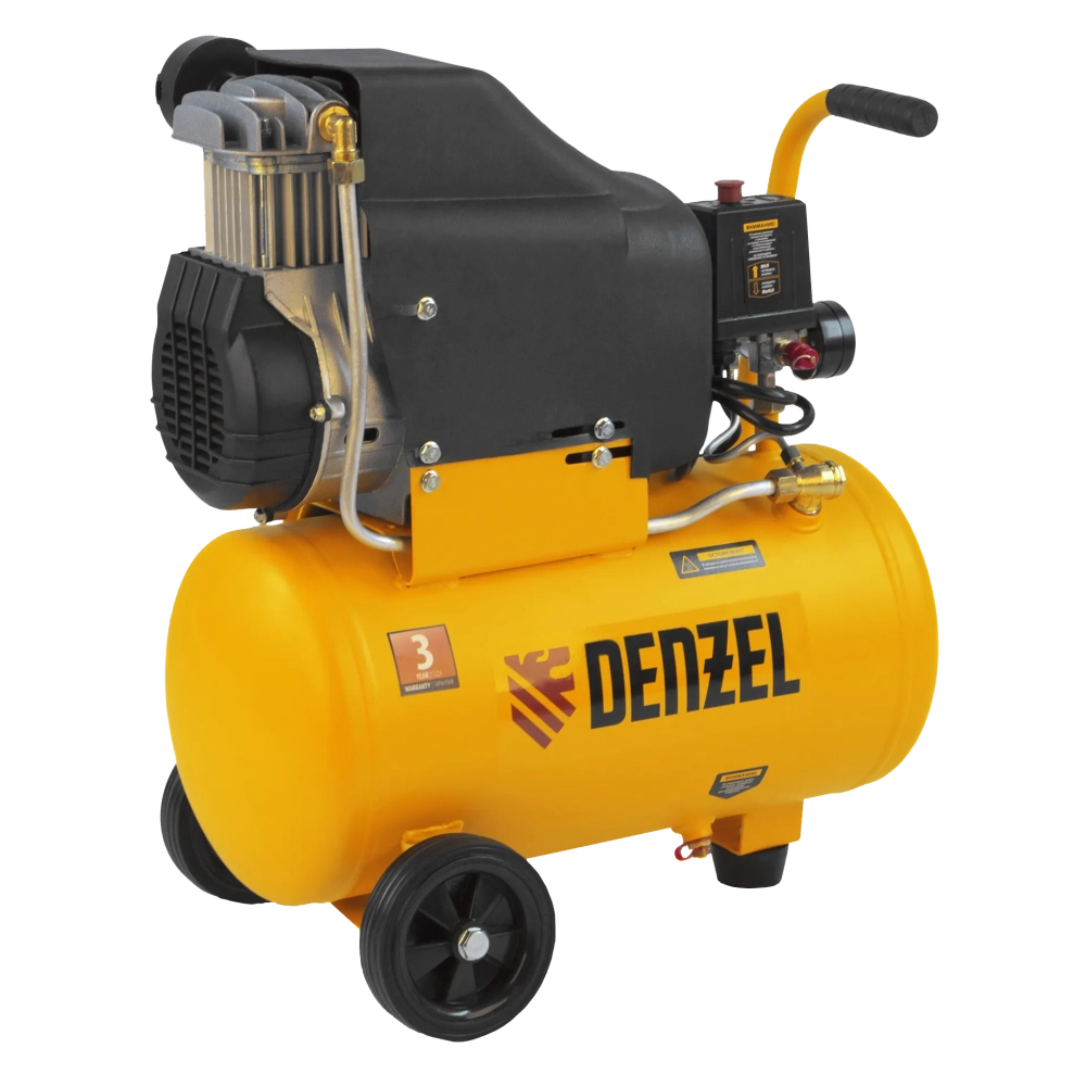 Безмасляный воздушный компрессор Denzel DLC1300/24 58171 мощностью 1,3 кВт, с объемом ресивера 24 л и производительностью на входе 206 л/мин, обеспечивает на выходе чистый сжатый воздух без примесей масла, что позволяет использовать его при окрашивании, креплении паркета и вагонки, продувке электронной техники, накачке шин. Подходит для обеспечения длительной работы пневмоаэрографа, пневмогравера, пневмошуруповерта, пневмодрели и пневмонейлера, а также другого пневмоинструмента. Быстроразъемный коннектор Euro (Rapid) упрощает подключение пневмомагистрали.