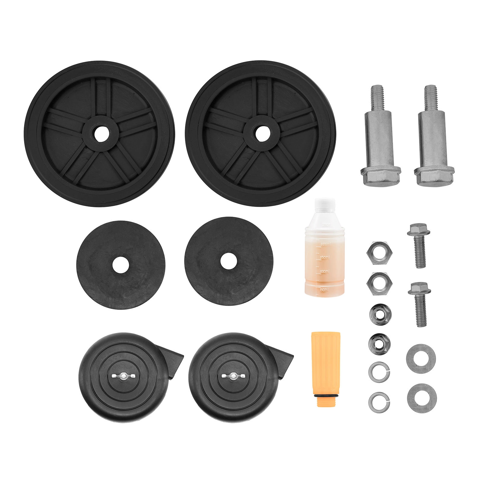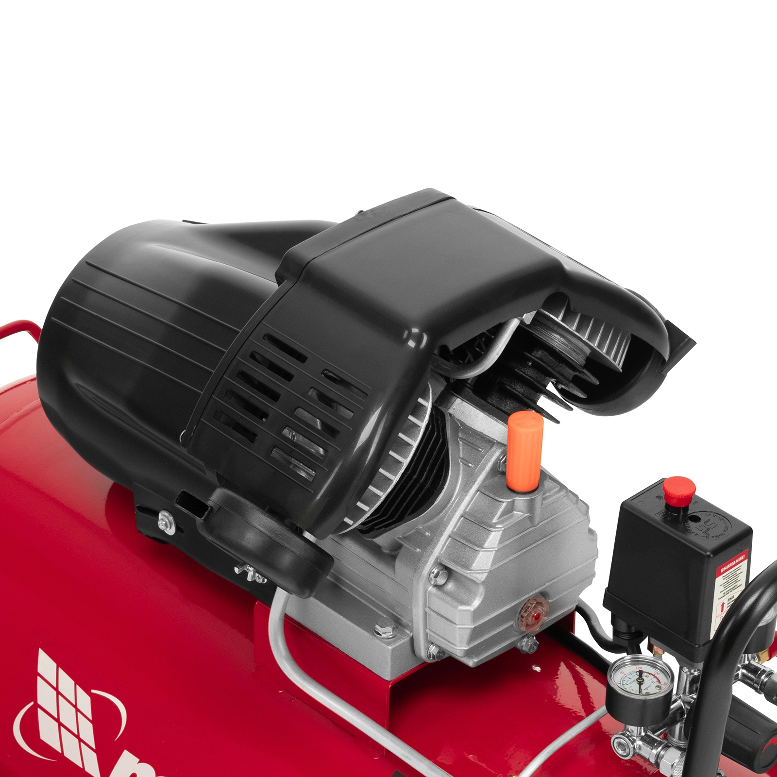 - Мобильность — благодаря колесам и рукоятке компрессор удобно разворачивать и перемещать по рабочей площадке.