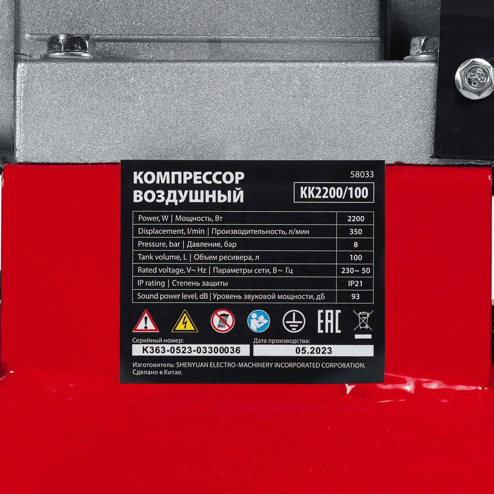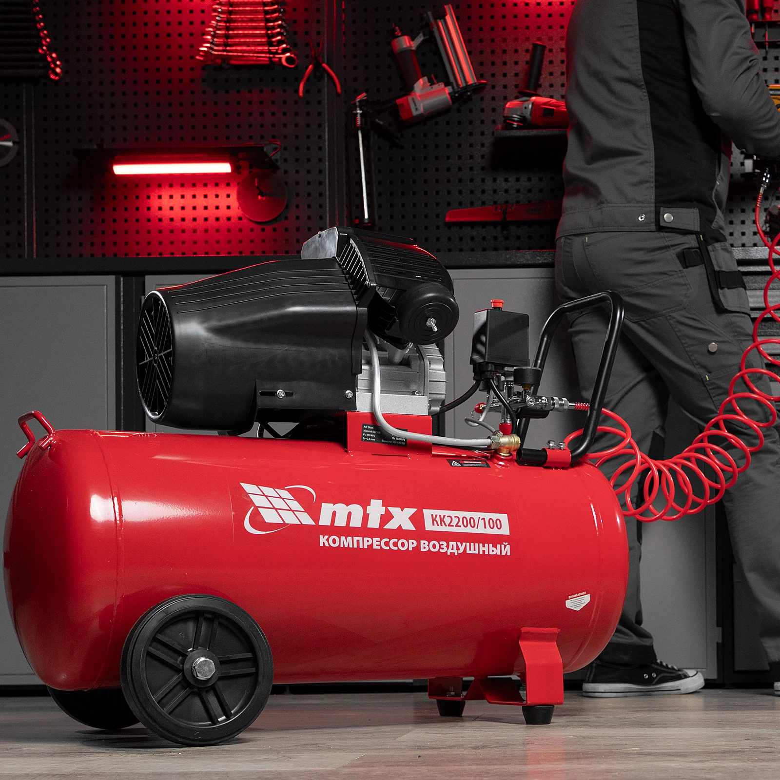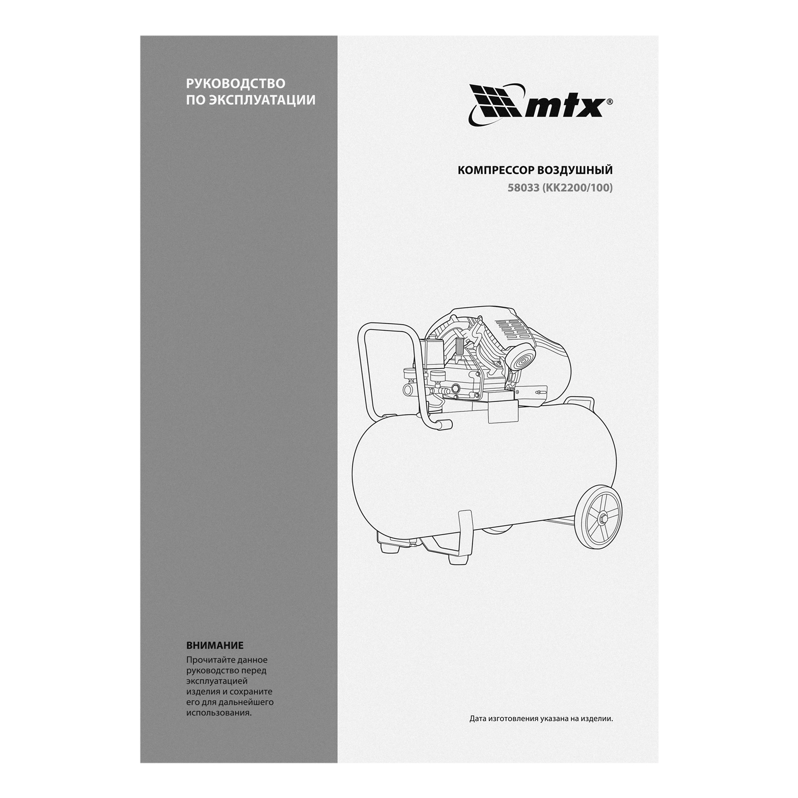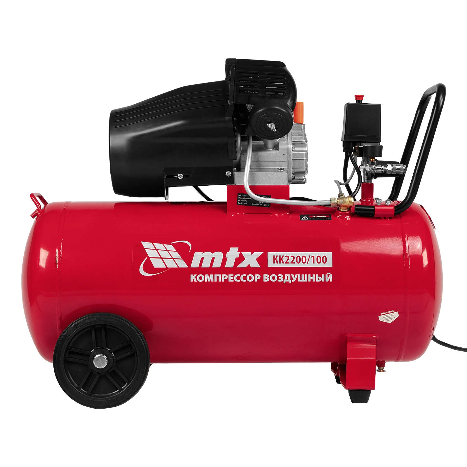 ПроизводителиКомпрессор воздушный КК-2200/100, 2,2 кВт, 350 л/мин, 100 л, прямой привод, масляный MTX