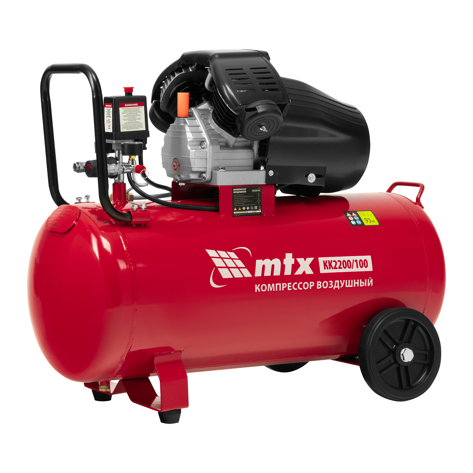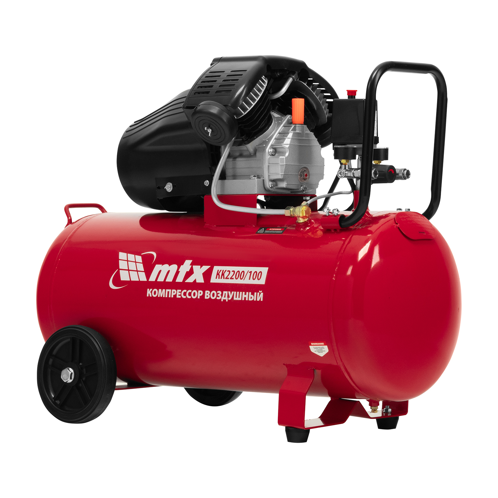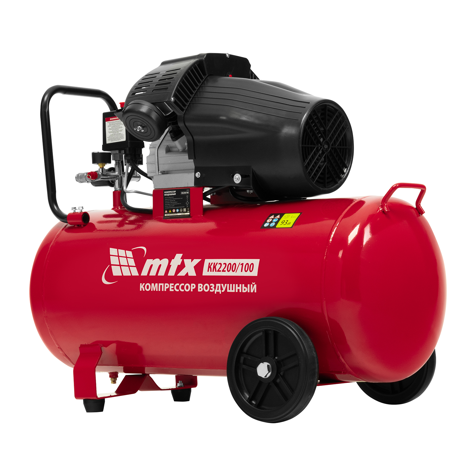 ПроизводителиКомпрессор воздушный КК-2200/100, 2,2 кВт, 350 л/мин, 100 л, прямой привод, масляный MTX