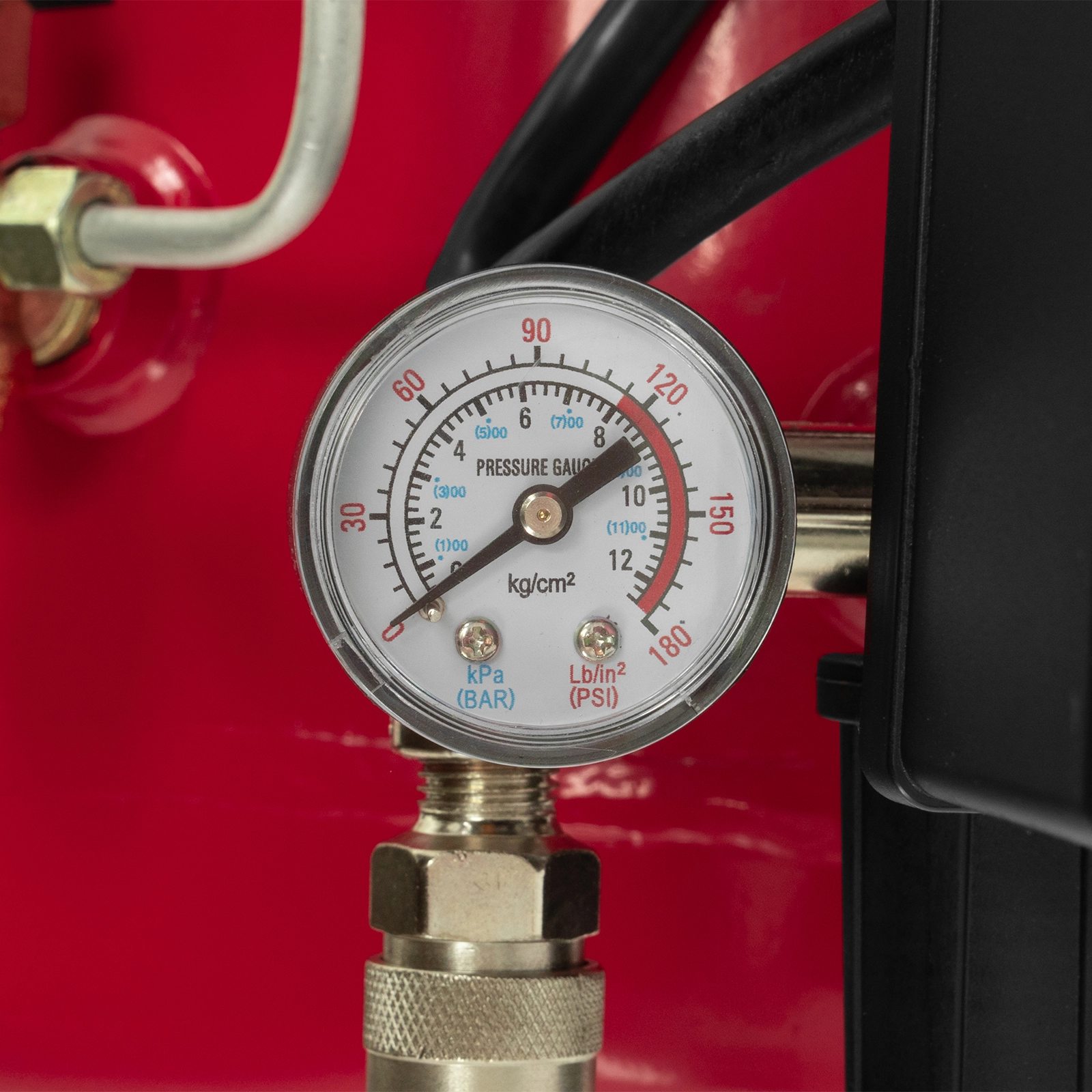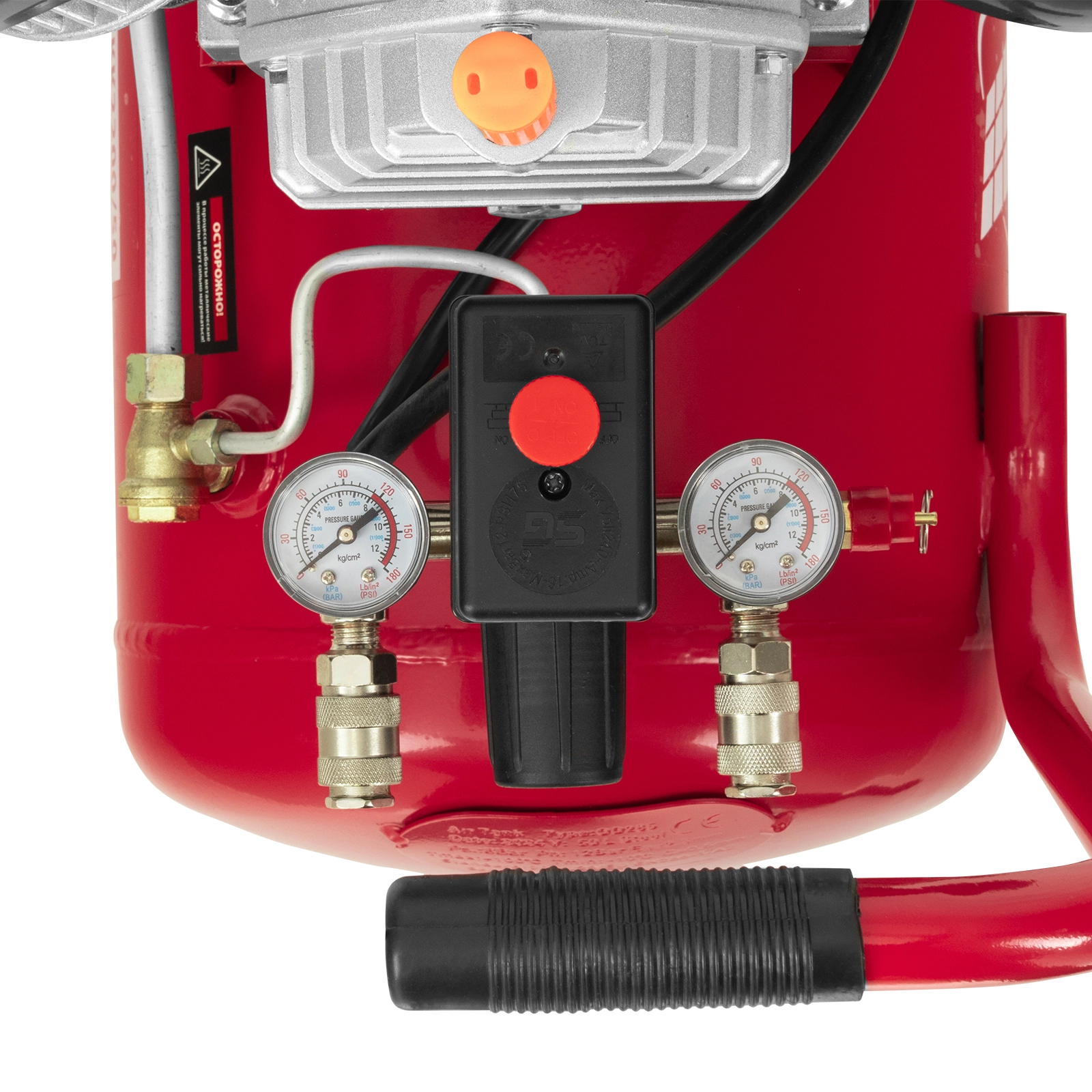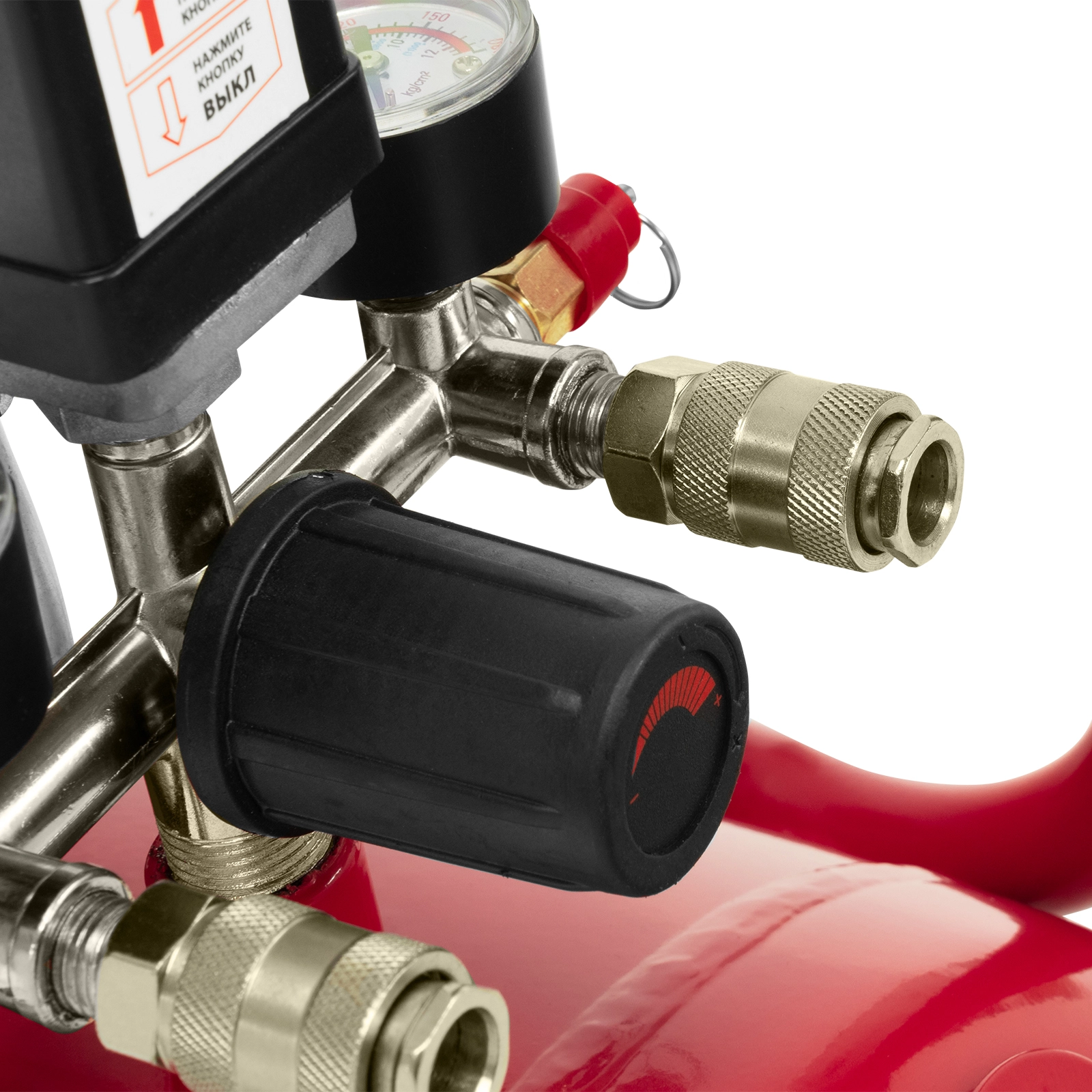 - Удобный контроль рабочих параметров — 2 манометра и регулятор позволяют отслеживать и корректировать давление для корректной работы пневмоинструмента.