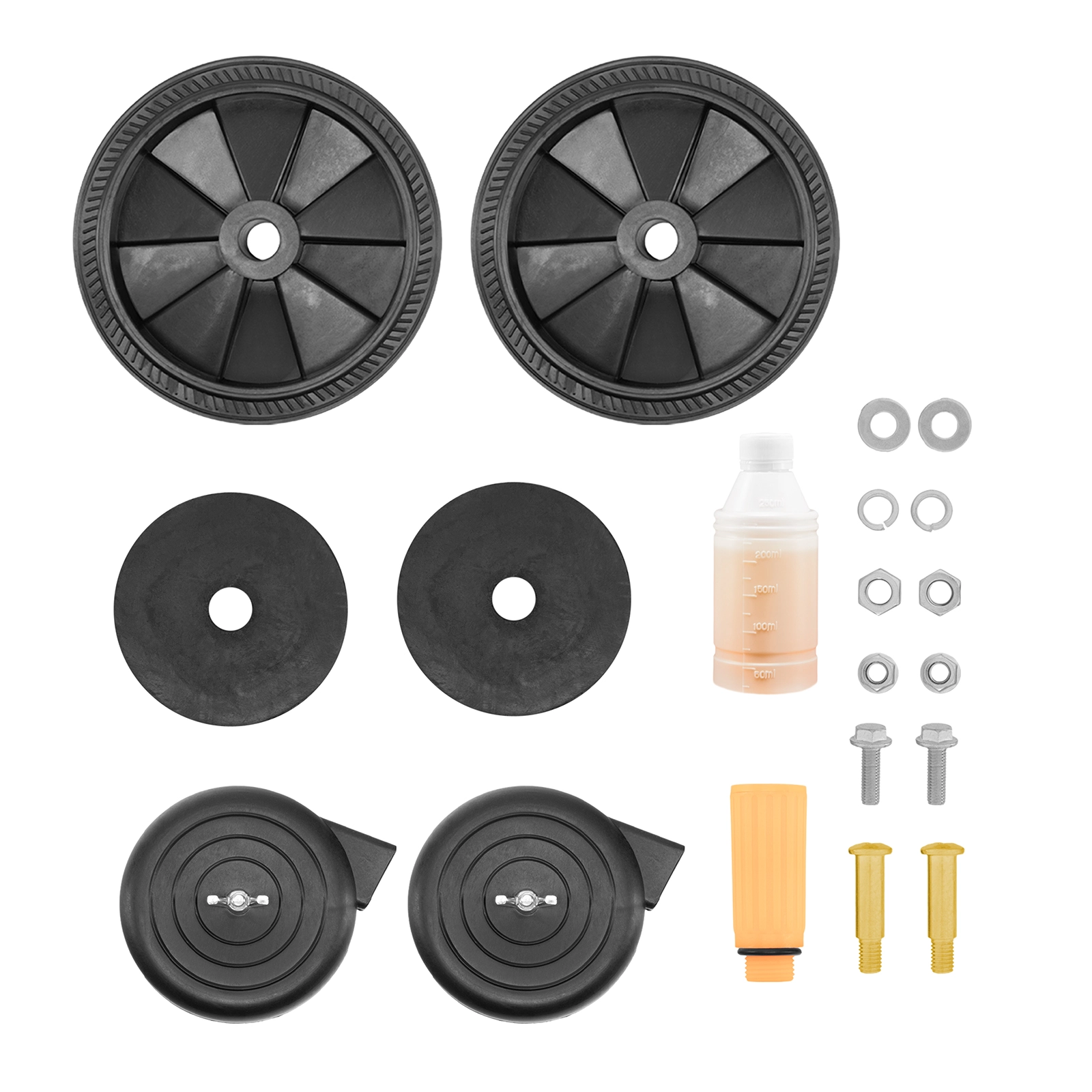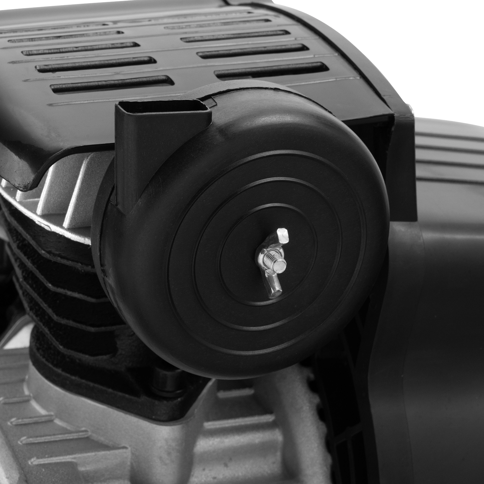 - Мобильность — благодаря колесам и рукоятке компрессор удобно разворачивать и перемещать по рабочей площадке.
