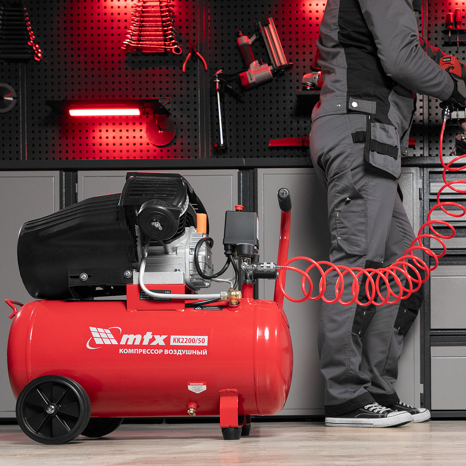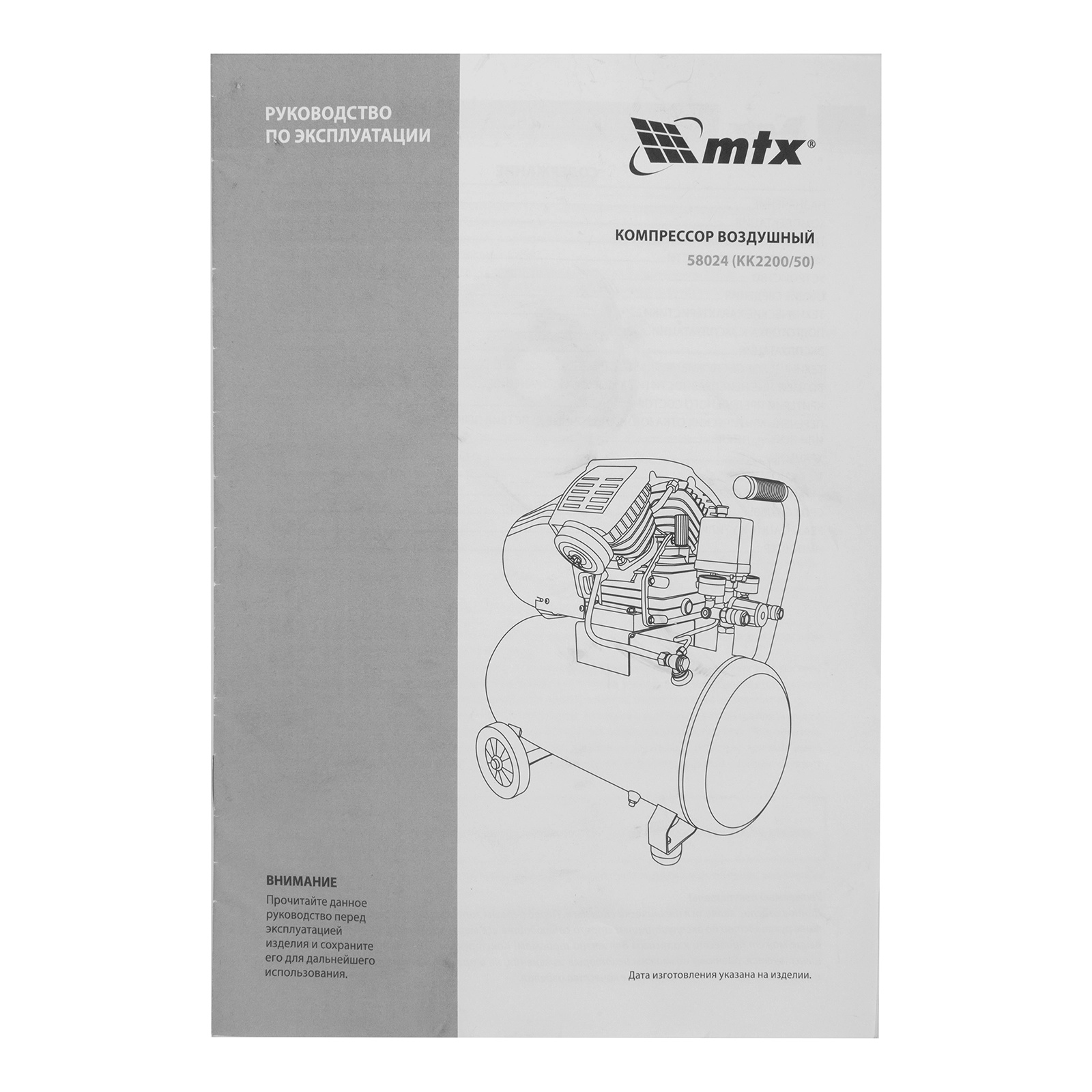 ПроизводителиКомпрессор воздушный КК-2200/50, 2,2 кВт, 350 л/мин, 50 л, прямой привод, масляный MTX