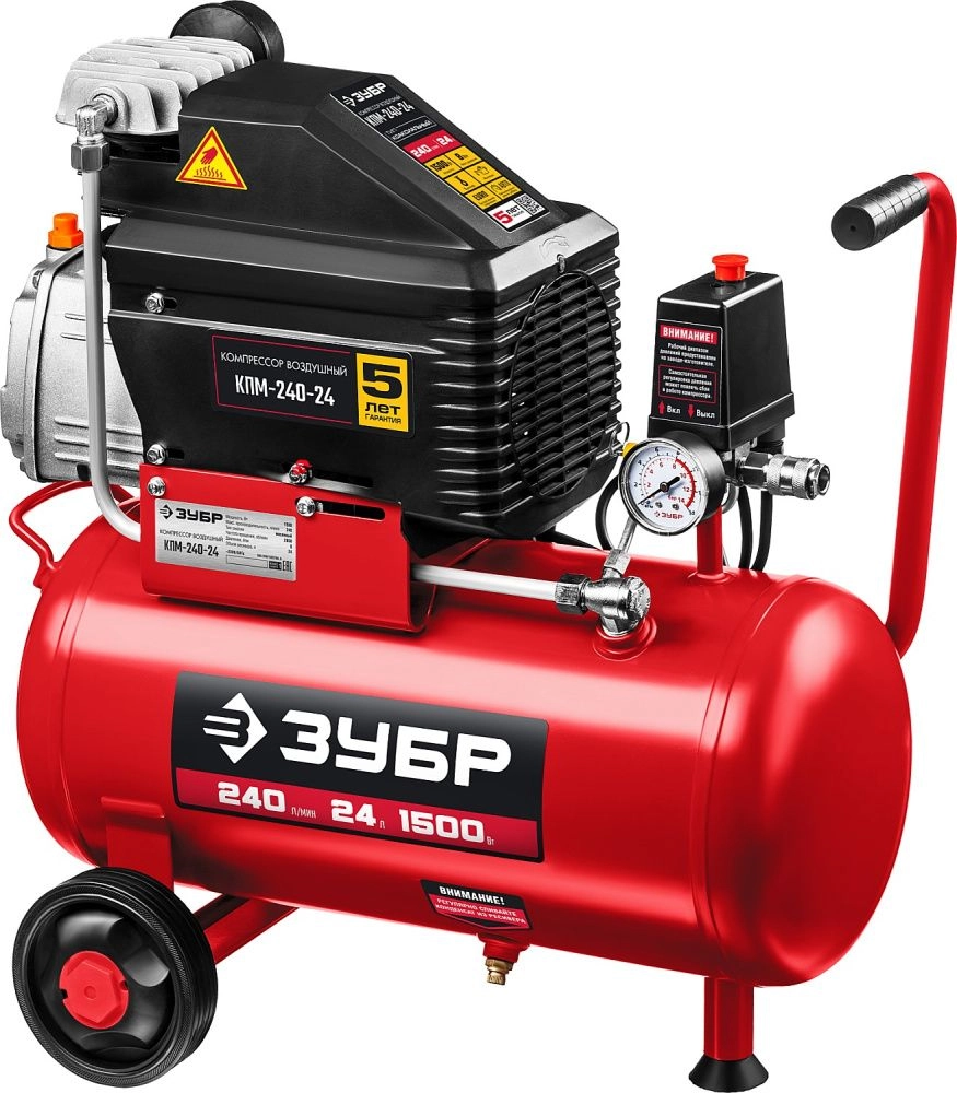 ПроизводителиКомпрессор воздушный КПМ-240-24 (1500 Вт, 240 л/мин, 24 л, кор.) ЗУБР