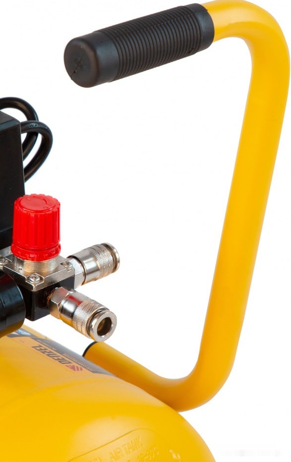 - Мобильность — ручка и колеса облегчают перемещение компрессора по рабочей площадке.