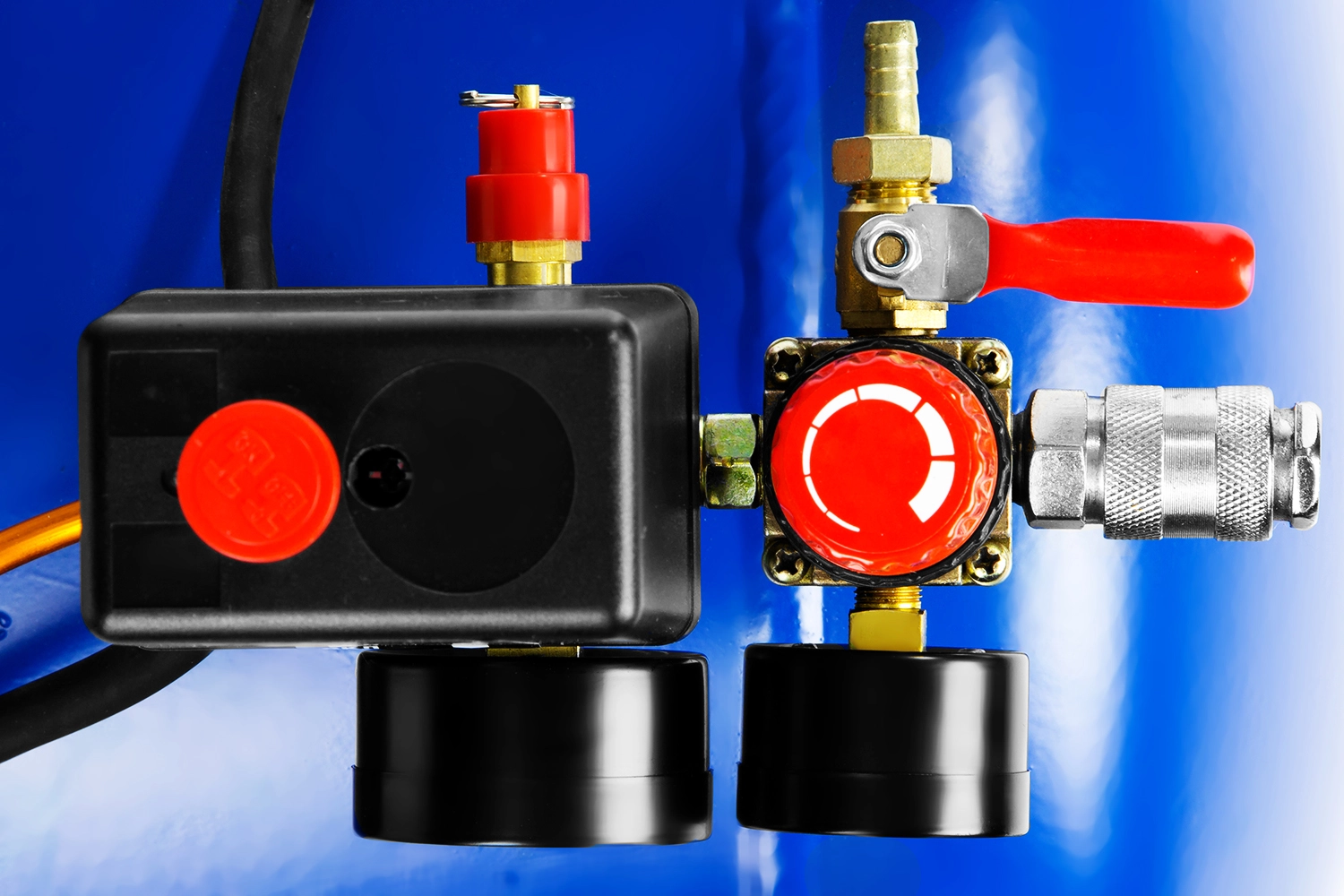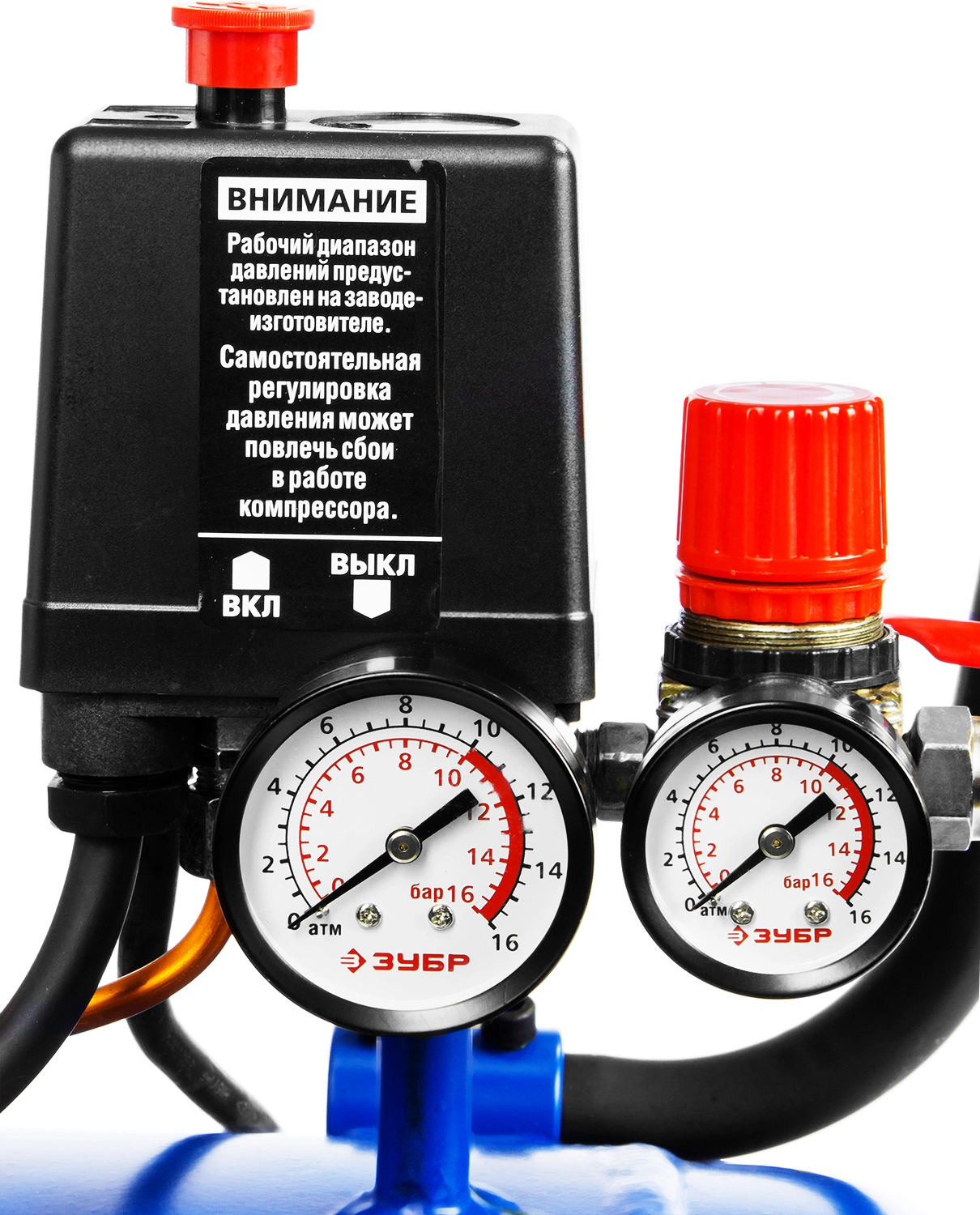 - Контроль давления в ресивере и на выходе при помощи двух манометров;