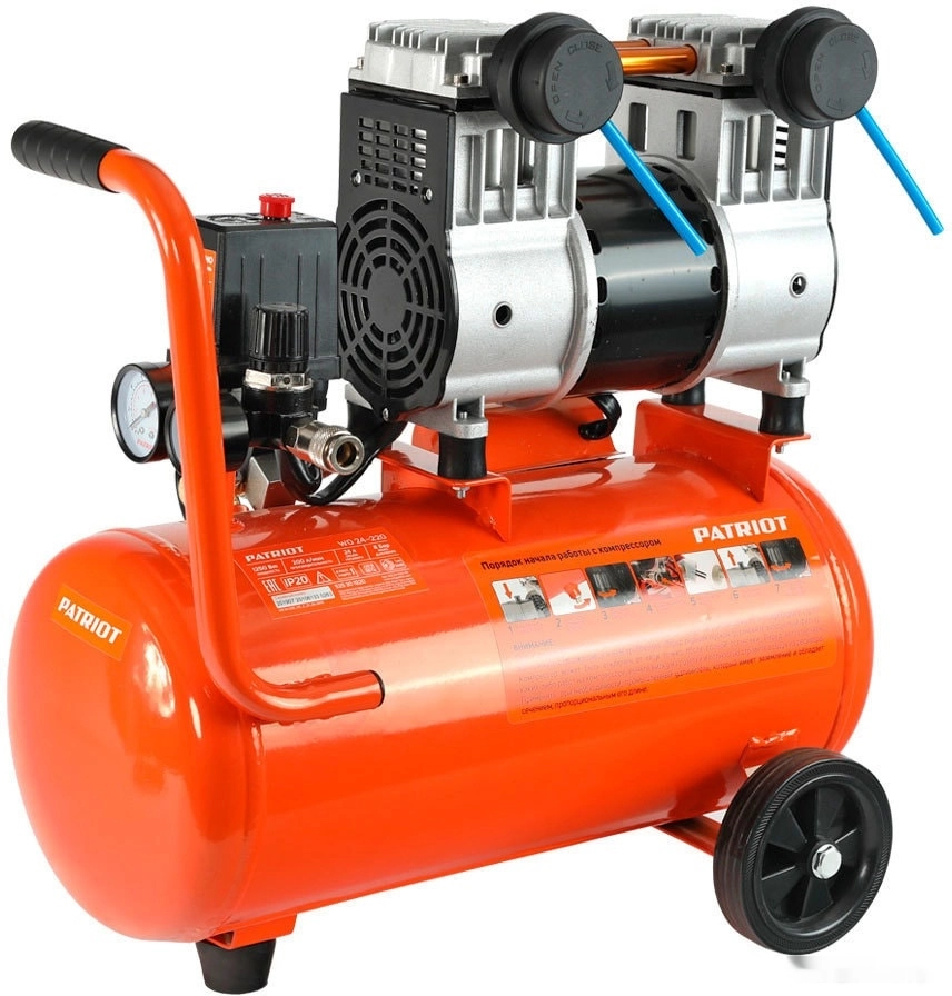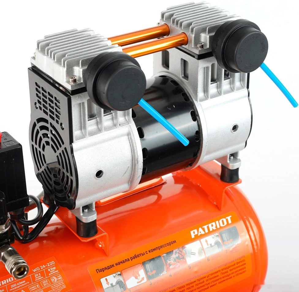ПроизводителиКомпрессор воздушный безмасл. WO24-220 (1,25 кВт 200 л/мин 220В 8бар 2порш. 24л) PATRIOT / IMPERIAL