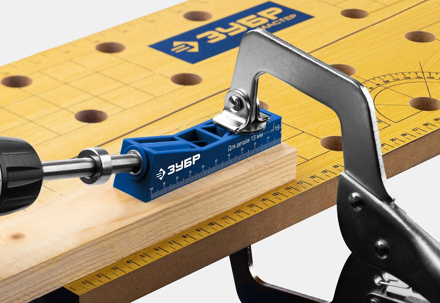 Бренд: ЗУБРИспользование кондукторов значительно упрощает процесс соединения деревянных деталей. Кондуктор предназначен для сверления глухих отверстий и точно позиционирует ступенчатое сверло. Глухое отверстие имеет внутри специальный профиль - больший диаметр на входе, ступенька, меньший диаметр на выходе. Ступенька в глубине глухого отверстия служит опорной поверхностью для головки самореза, обеспечивая прочное соединение деталей. Достаточно просверлить отверстия только в одной из соединяемых деталей и стянуть детали специальными саморезами для глухих отверстий. При выборе самореза нужно учитывать толщину соединяемых деталей.