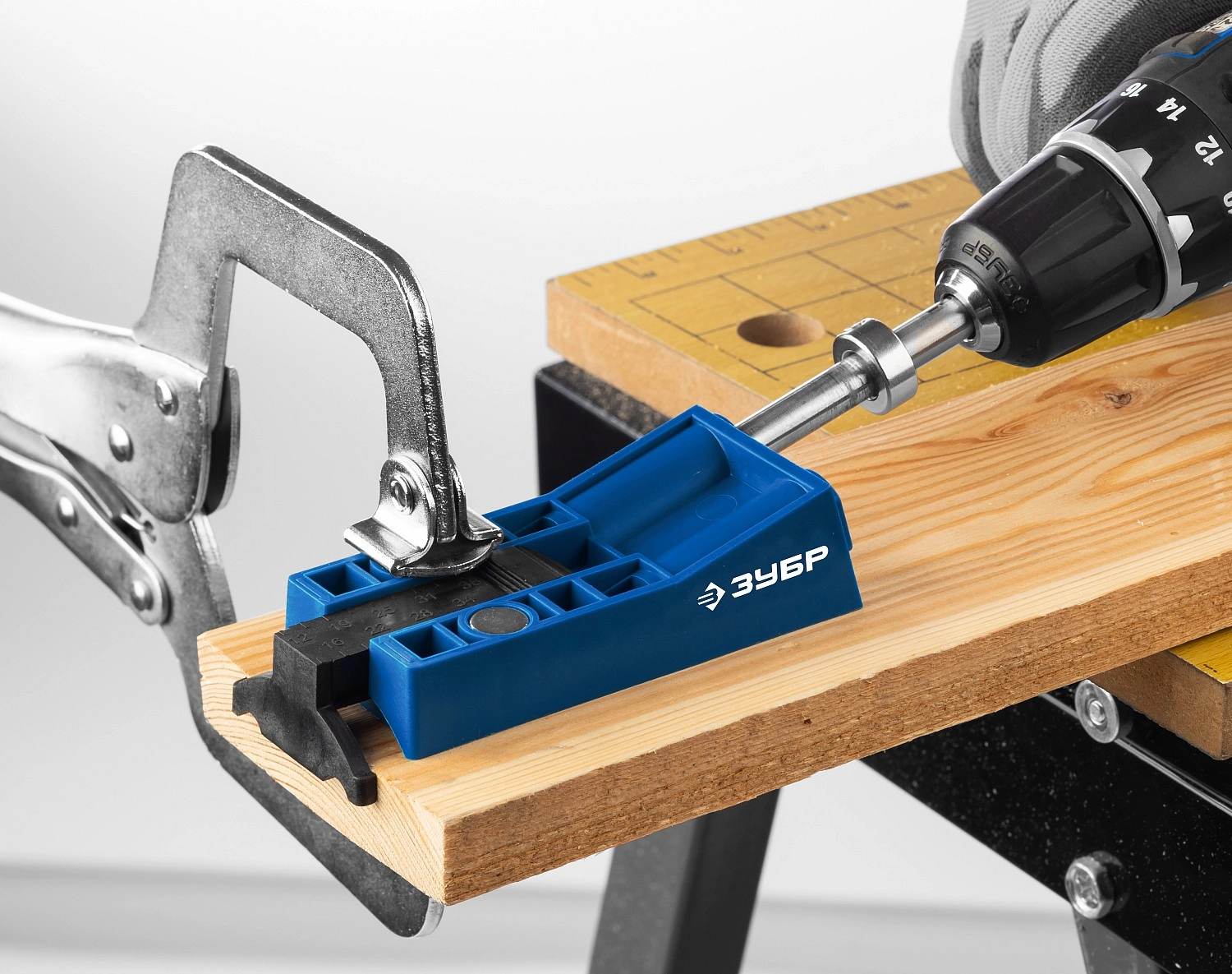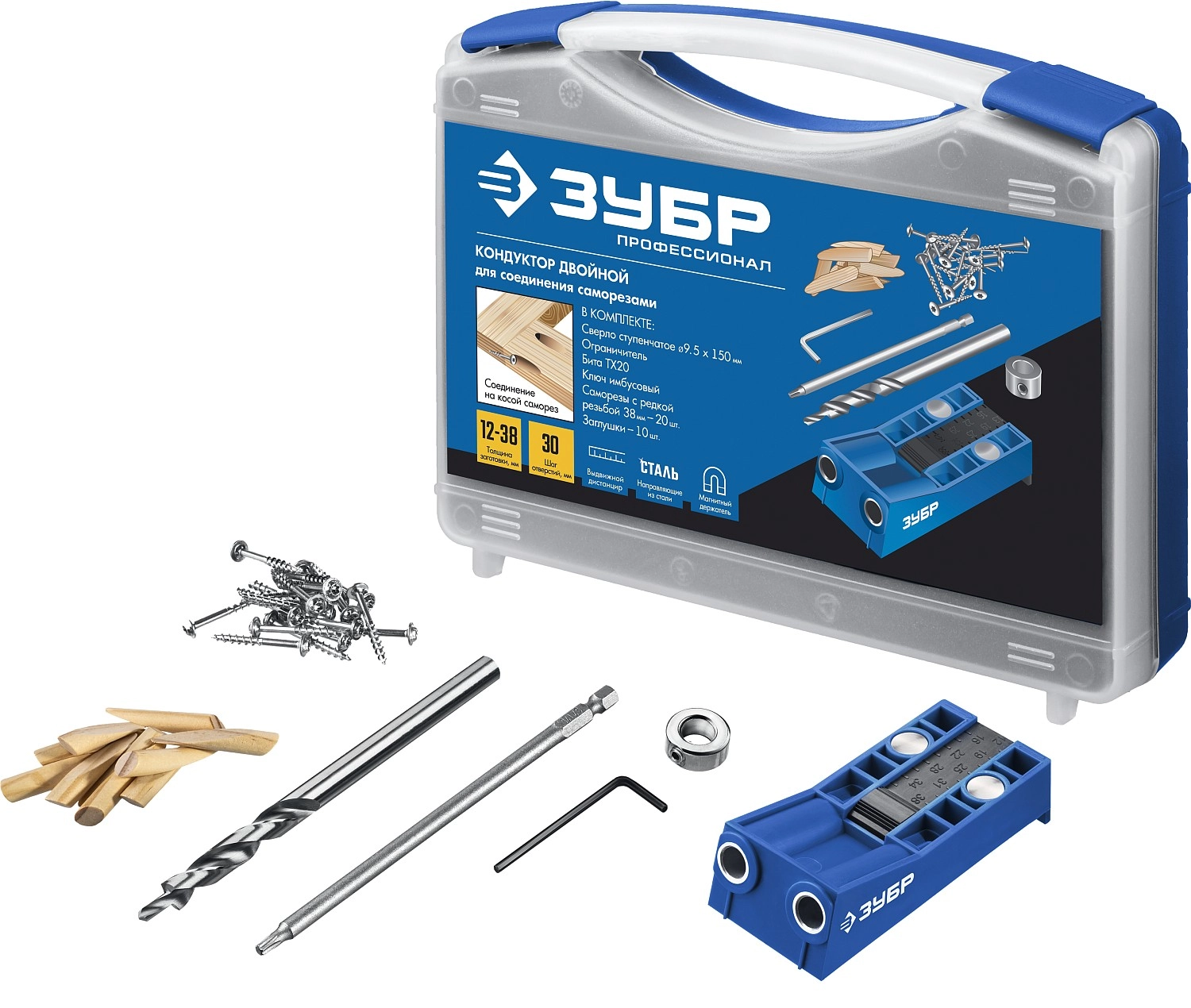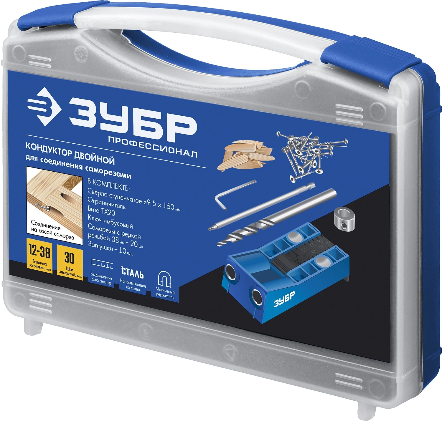 ПроизводителиКондуктор двойной для для глухих отверстий, два отверстия, набор (30091) ЗУБР