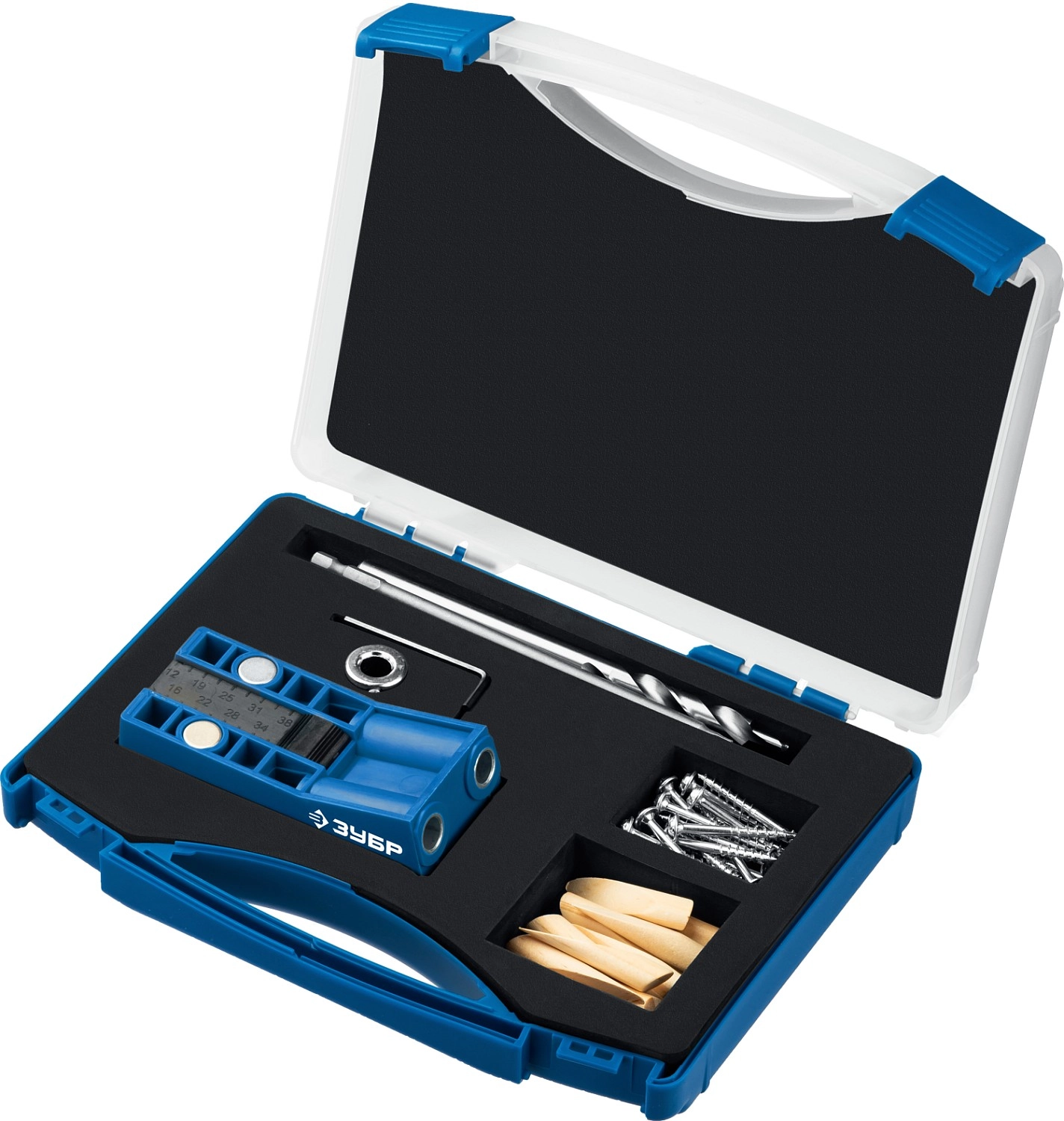 Кондуктор ЗУБР 30091 предназначен для соединения деревянных деталей, для сверления глухих отверстий и точно позиционирует ступенчатое сверло. Глухое отверстие имеет внутри специальный профиль - больший диаметр на входе, ступенька, меньший диаметр на выходе. Ступенька в глубине глухого отверстия служит опорной поверхностью для головки самореза, обеспечивая прочное соединение деталей. Достаточно просверлить отверстия только в одной из соединяемых деталей и стянуть детали специальными саморезами для глухих отверстий.Производитель: Крафтул И/Е Гмбх, Альтер Поствег Штр., Лоенинген, Германия