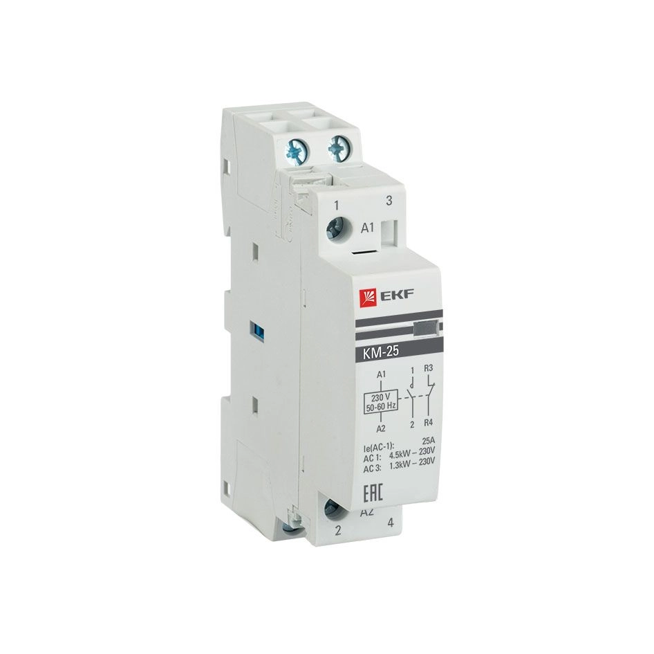 ПроизводителиКонтактор модульный КМ (230/400В 25А NО+NC IP20) km-1-25-11 EKF PROxima