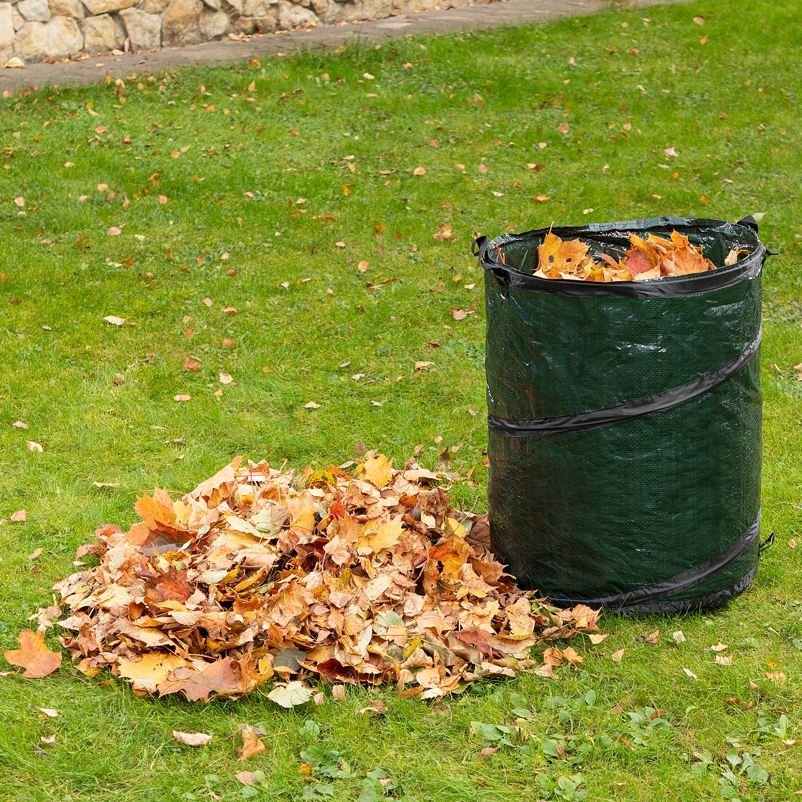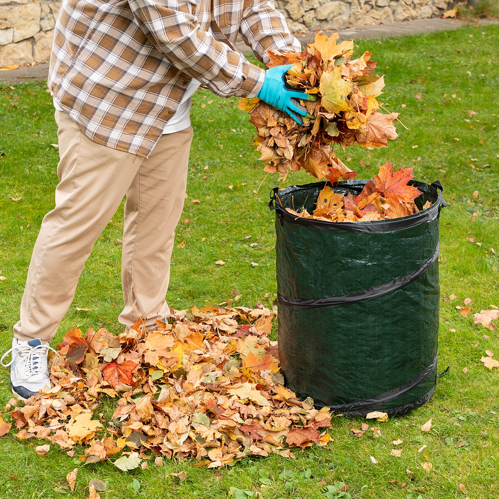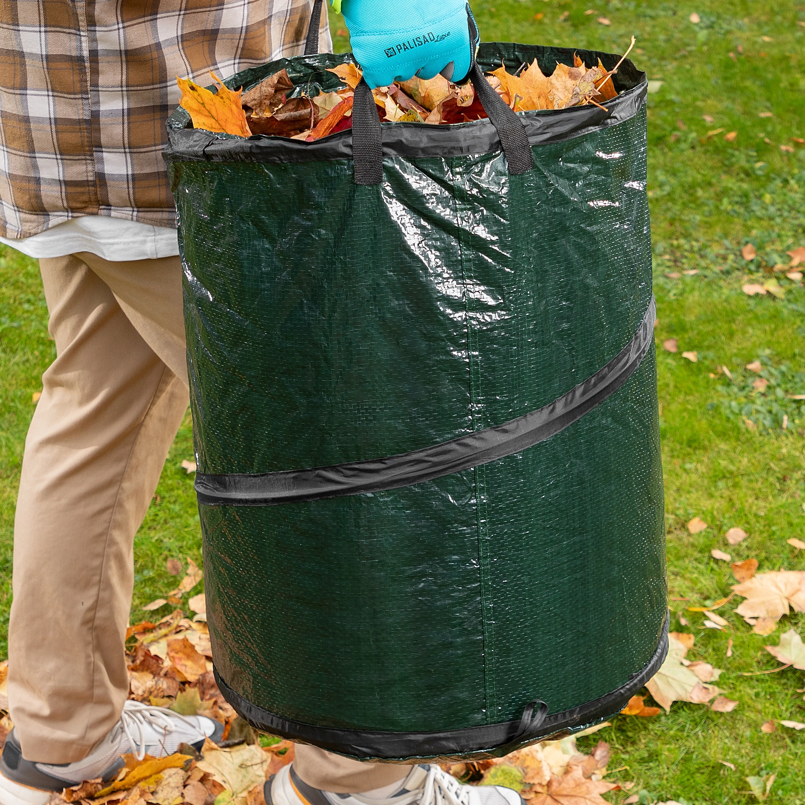 Складной садовый контейнер с ручками Palisad 64495 вместимостью 95 л используется для уборки опавших листьев, срезанных веток и другого садового мусора.